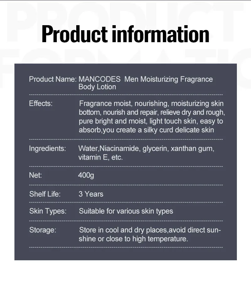 Название продукта: мужской увлажняющий ароматический лосьон для тела