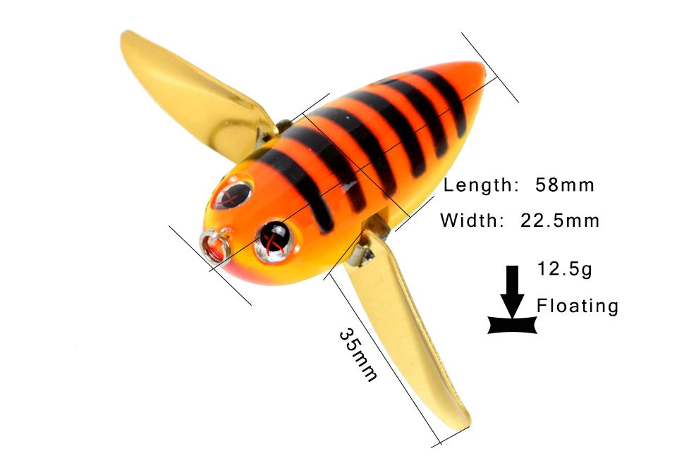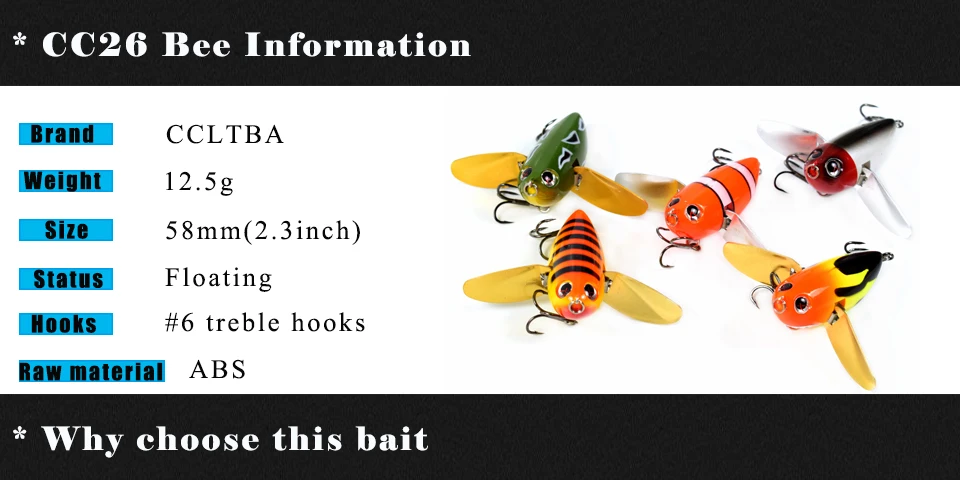 Ccltba Topwater Рыбалка колебание приманки насекомых приманка 58 мм 12,5G Две настроены plapper металлических крыльев приманки жесткие пластиковые пчелиный рыболовная приманка