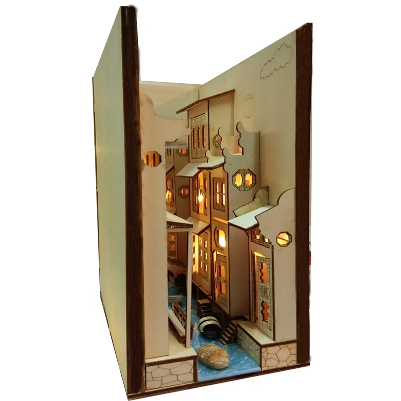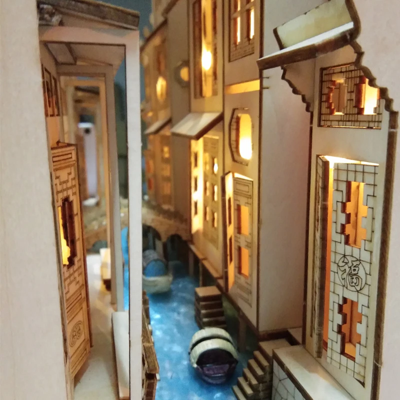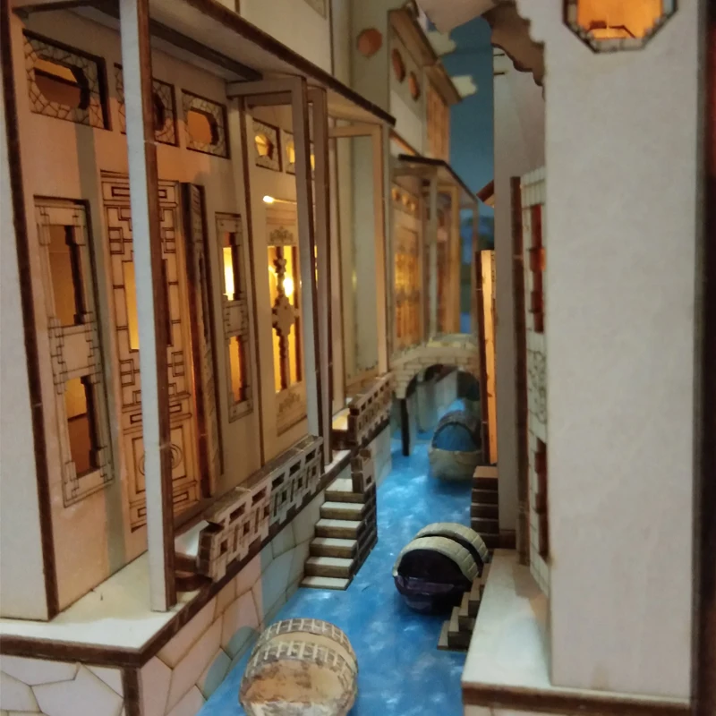 Материал: дерево Размер: 260*200*110 мм Моделирование: Архитектура Время сборки: 4 часа Набор инструментов: нож, щетка, пинцет, шлифовальная полоса, зеркало, лампа, клей, пульт дистанционного управления, батарея, светодиод