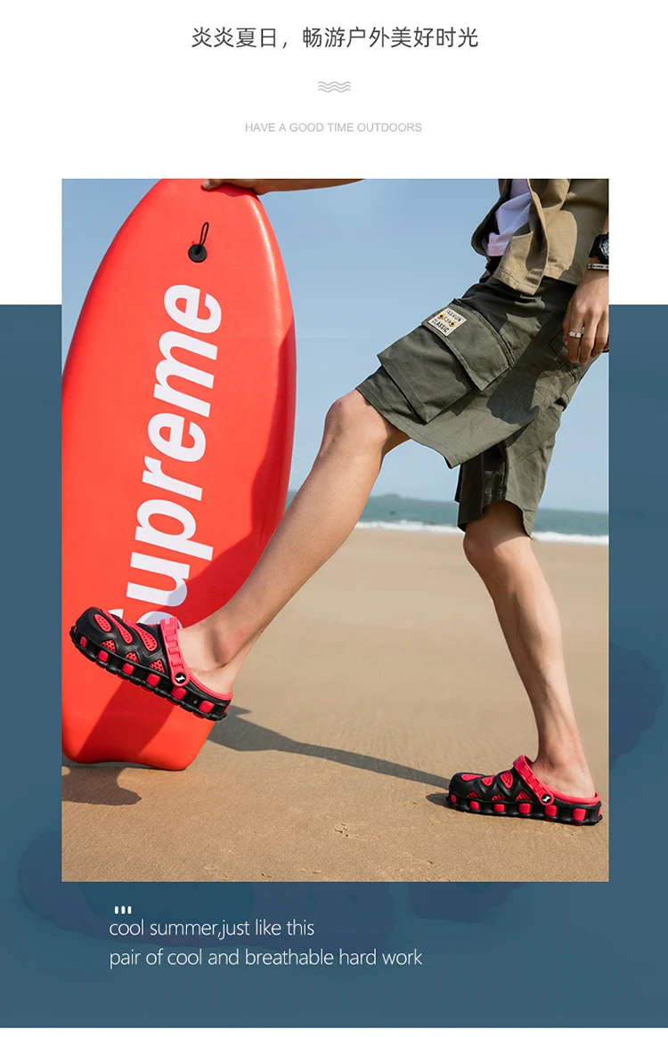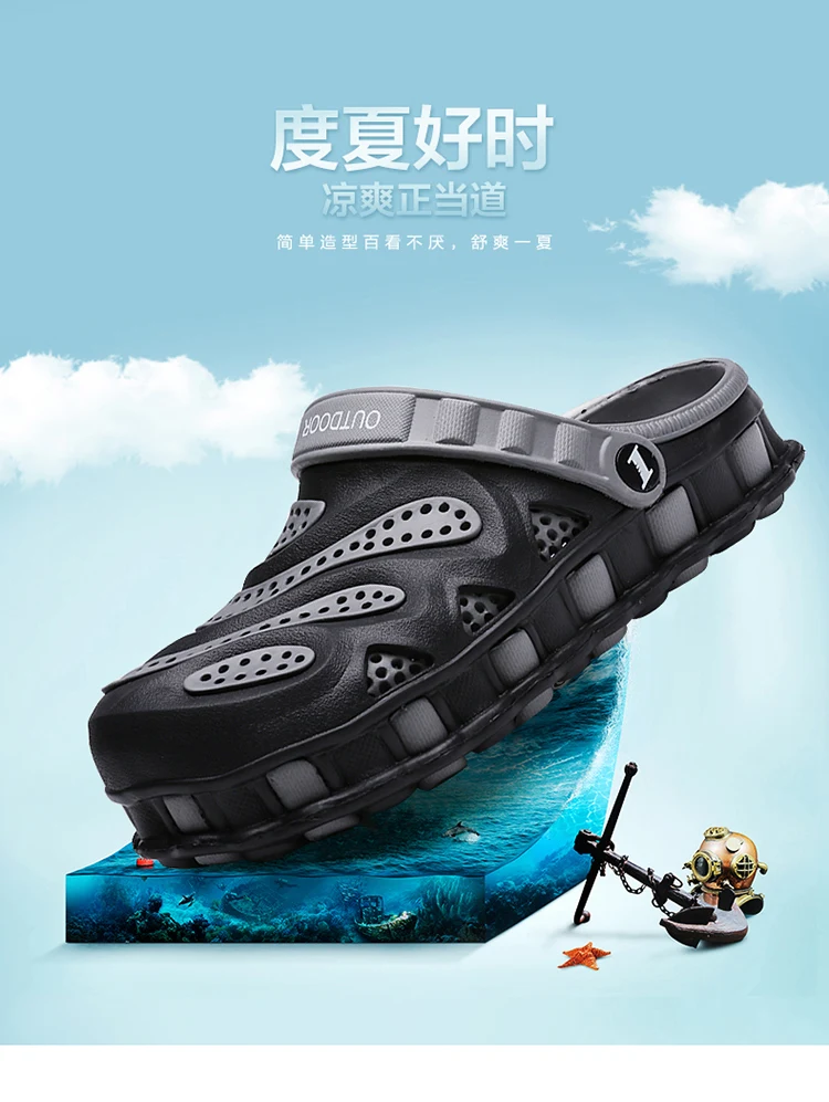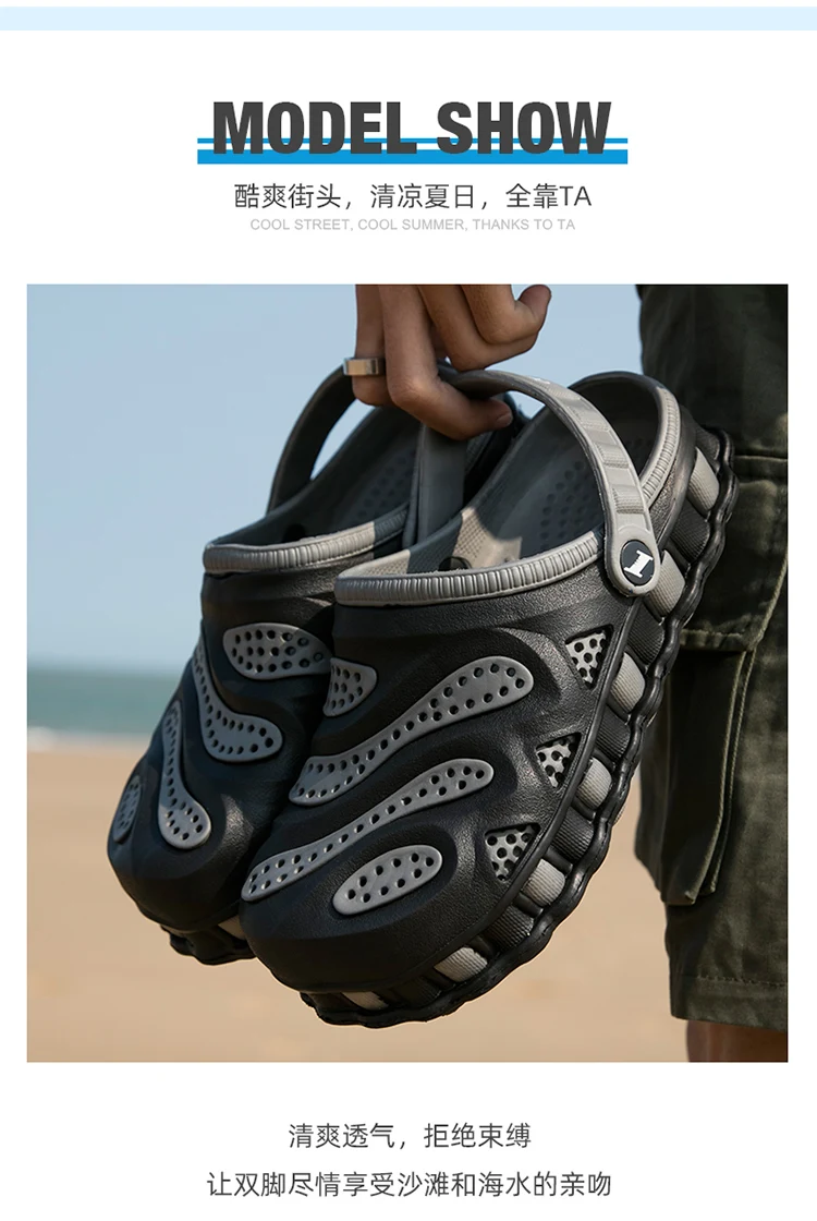 Summer Sneakers Slippers Men 2020 Beach Sandals Men Clogs Garden Shoes Outdoor Slip On Men Footwear Sport Beach Male Jelly Shoes Upper:PU Sole:Rubber Size:40-46