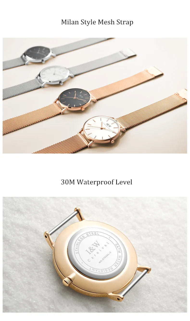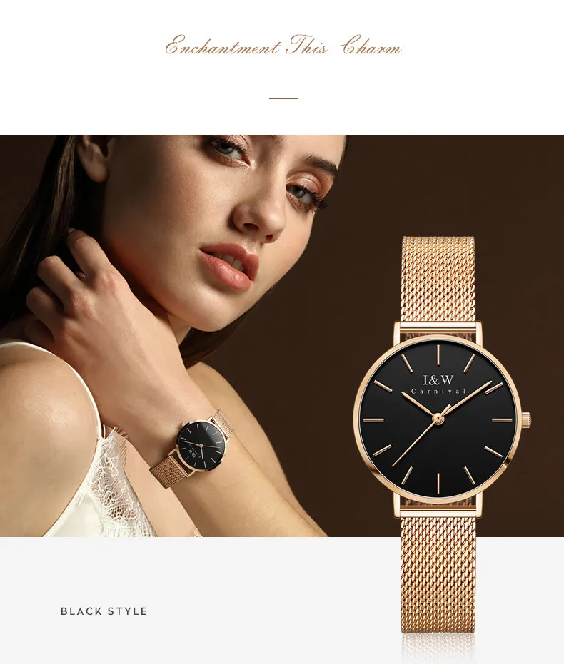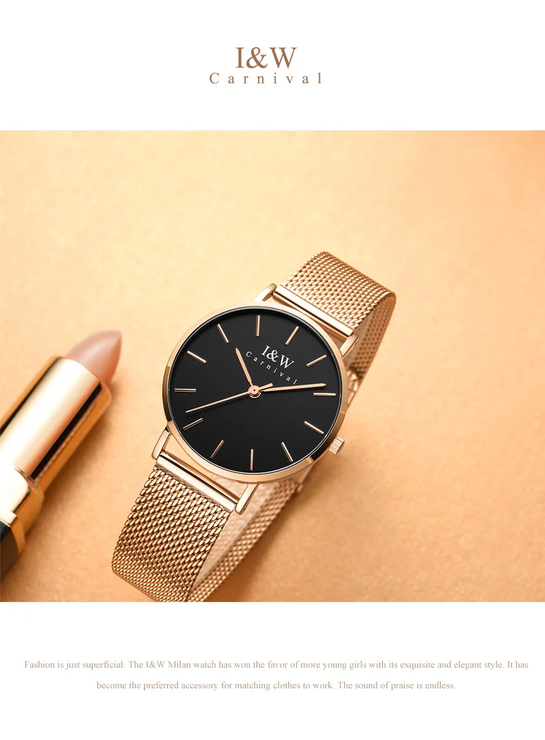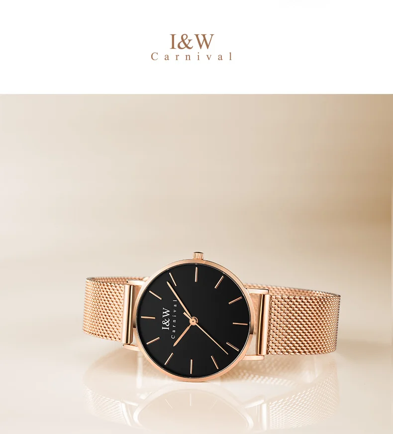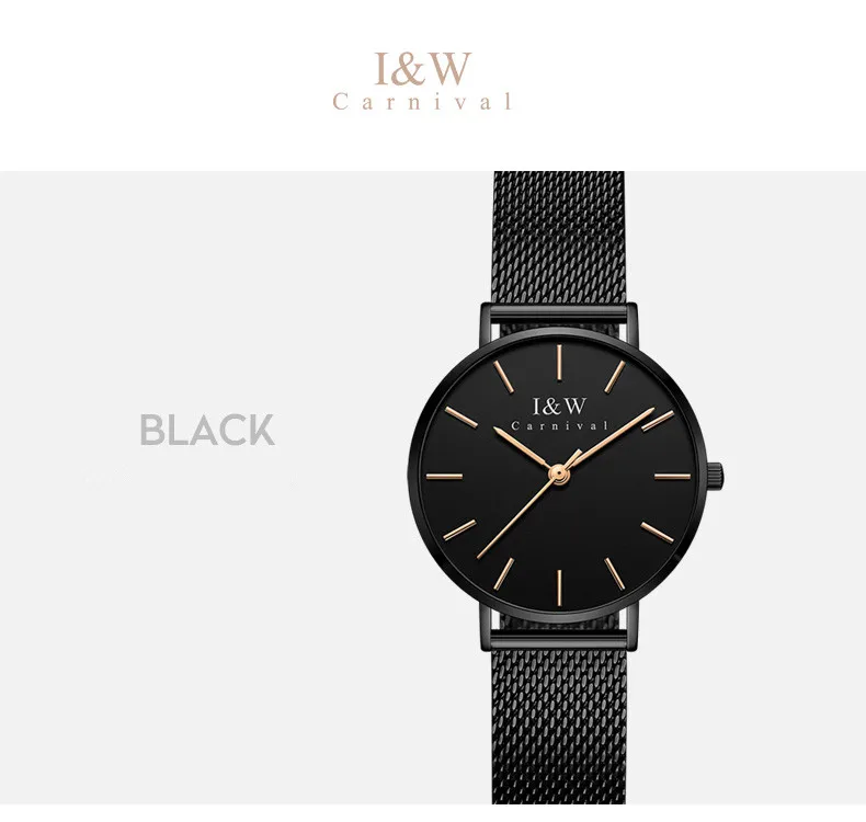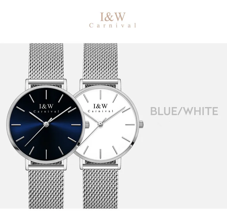 Карнавальный бренд, женские модные кварцевые часы, женские Роскошные водонепроницаемые ультра тонкие повседневные наручные часы из нержавеющей стали, Relogio Feminino