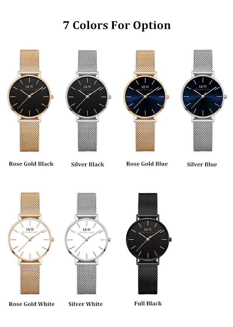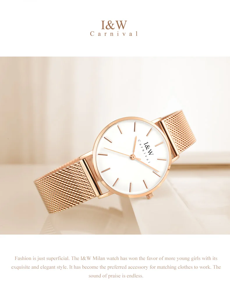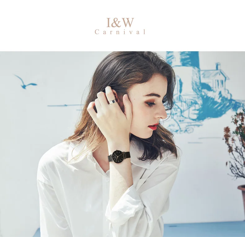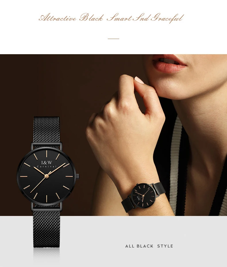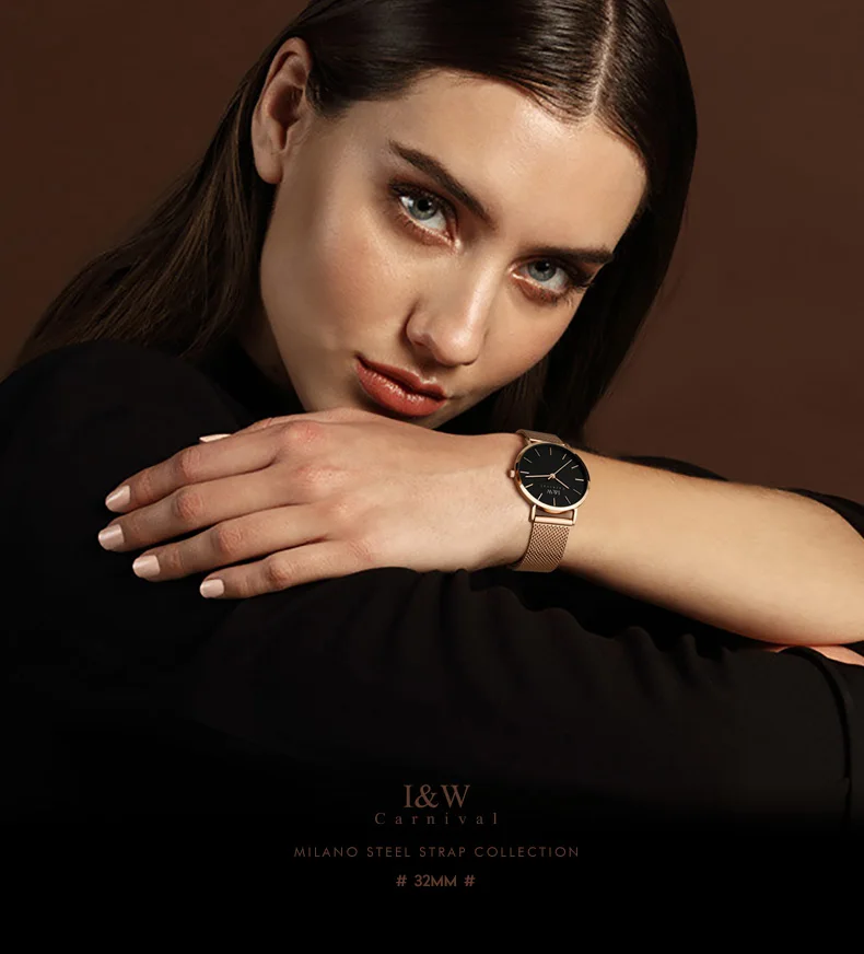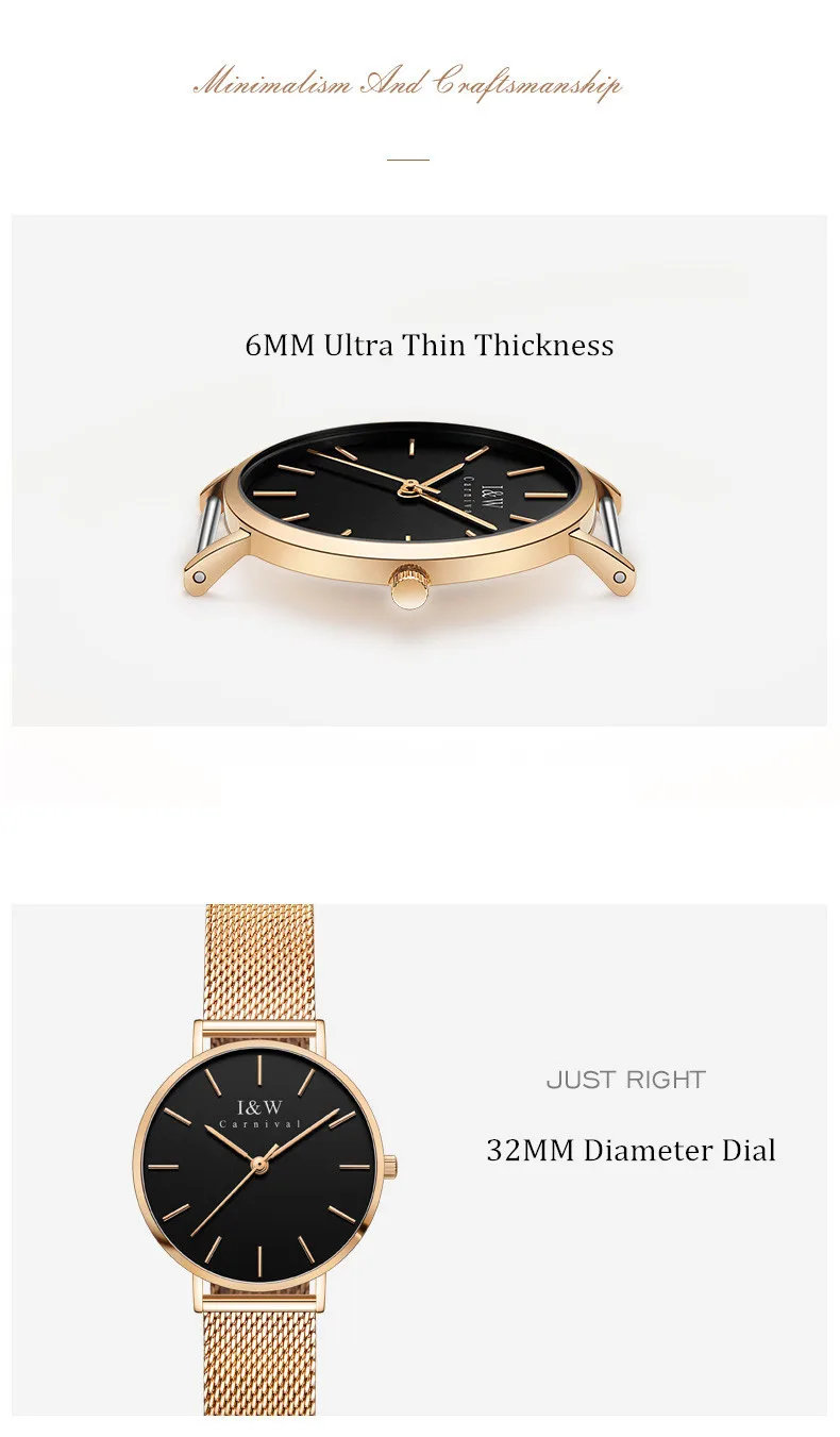 Карнавальный бренд, женские модные кварцевые часы, женские Роскошные водонепроницаемые ультра тонкие повседневные наручные часы из нержавеющей стали, Relogio Feminino