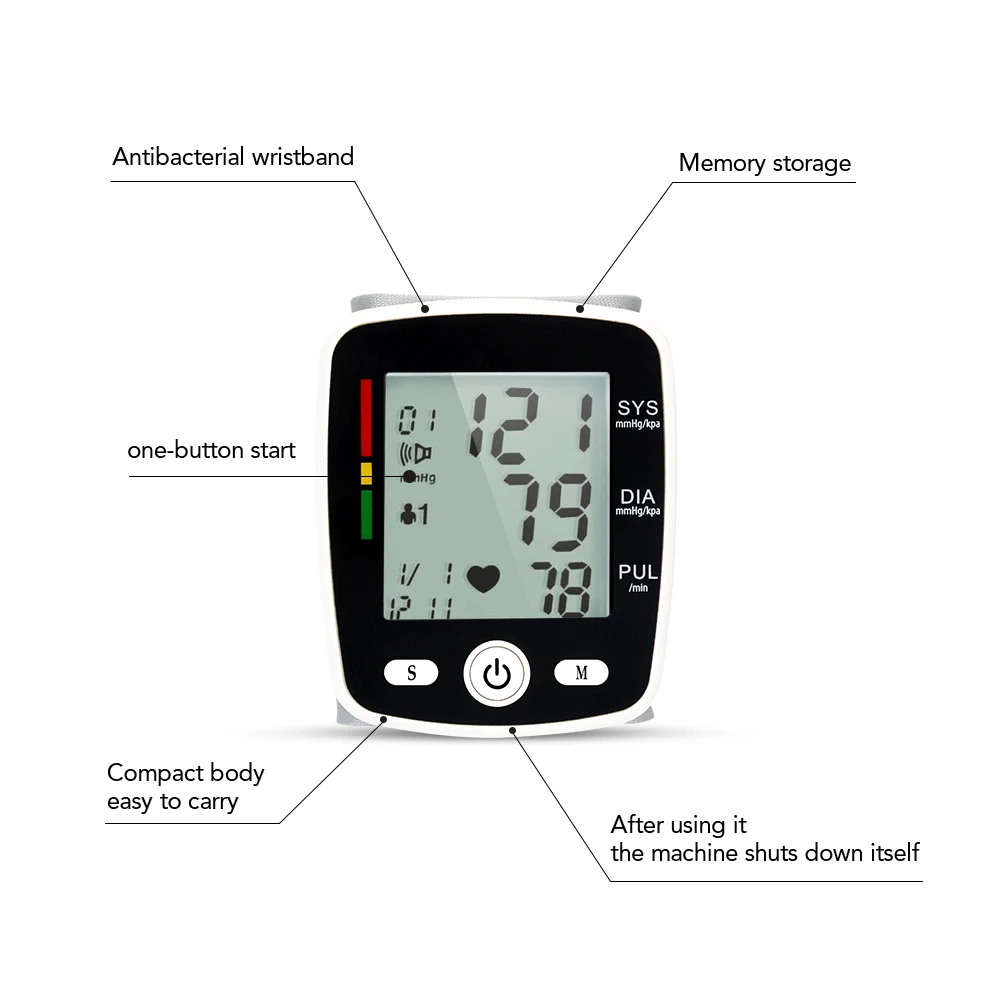 Wrist Digital Blood Pressure Monitor Tonometer Meter USB Charge Wrist Automatic Automatic Voice OLI-W355 Germany Chip LCD