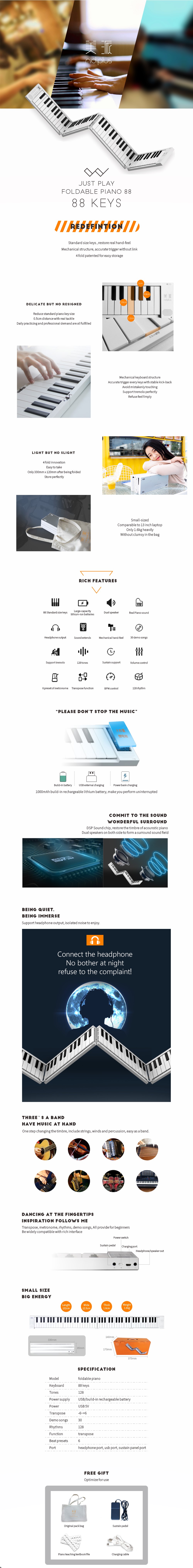 Складная электронная клавиатура MIDIPLUS для пианино, 88 клавиш, 128 тонов, двойной выход динамики наушники с педалью поддержки, Новинка