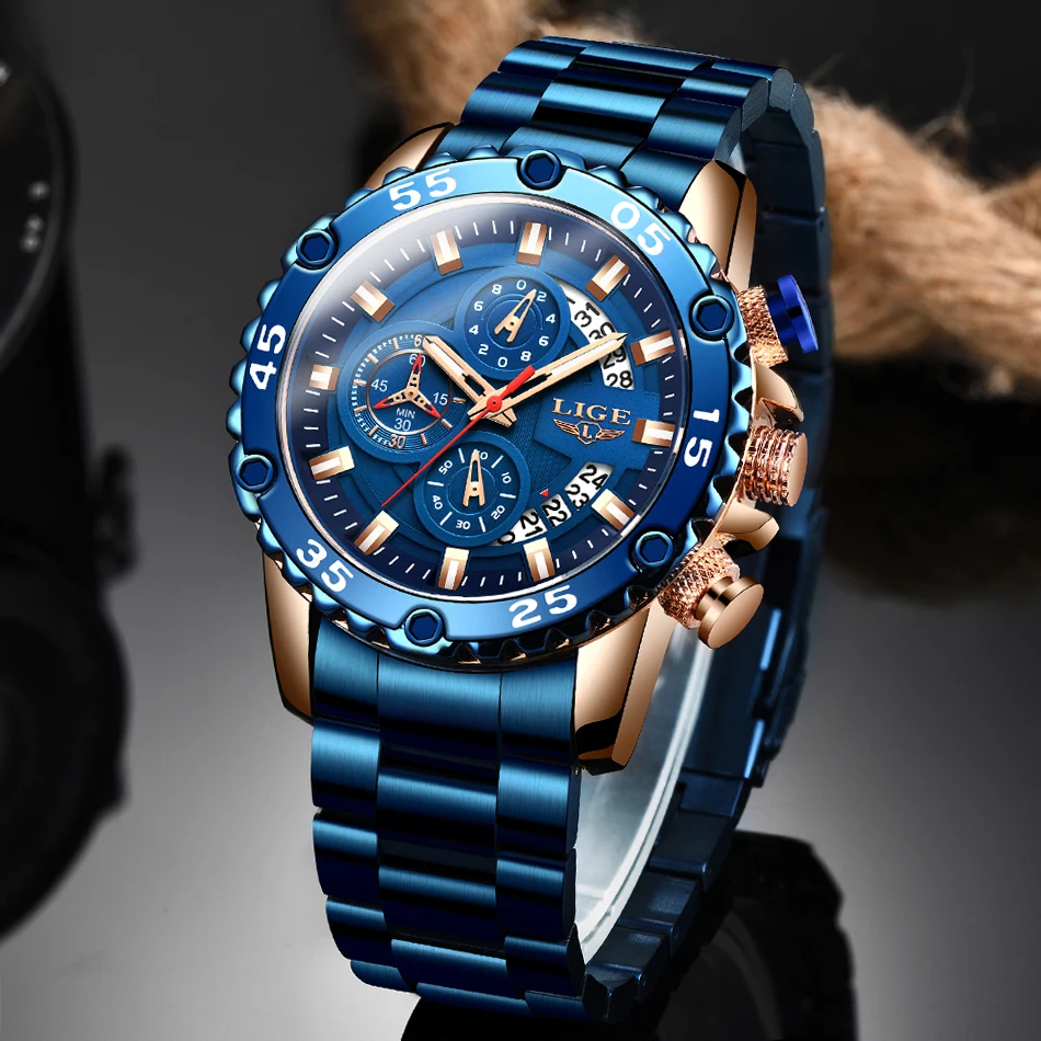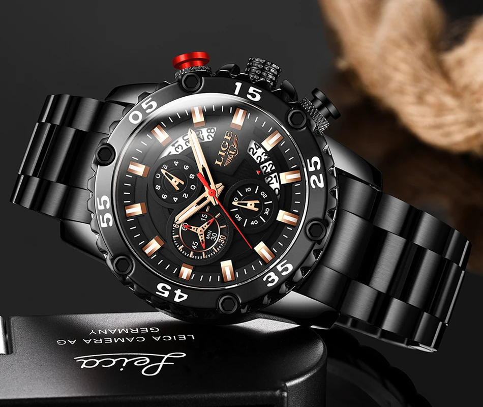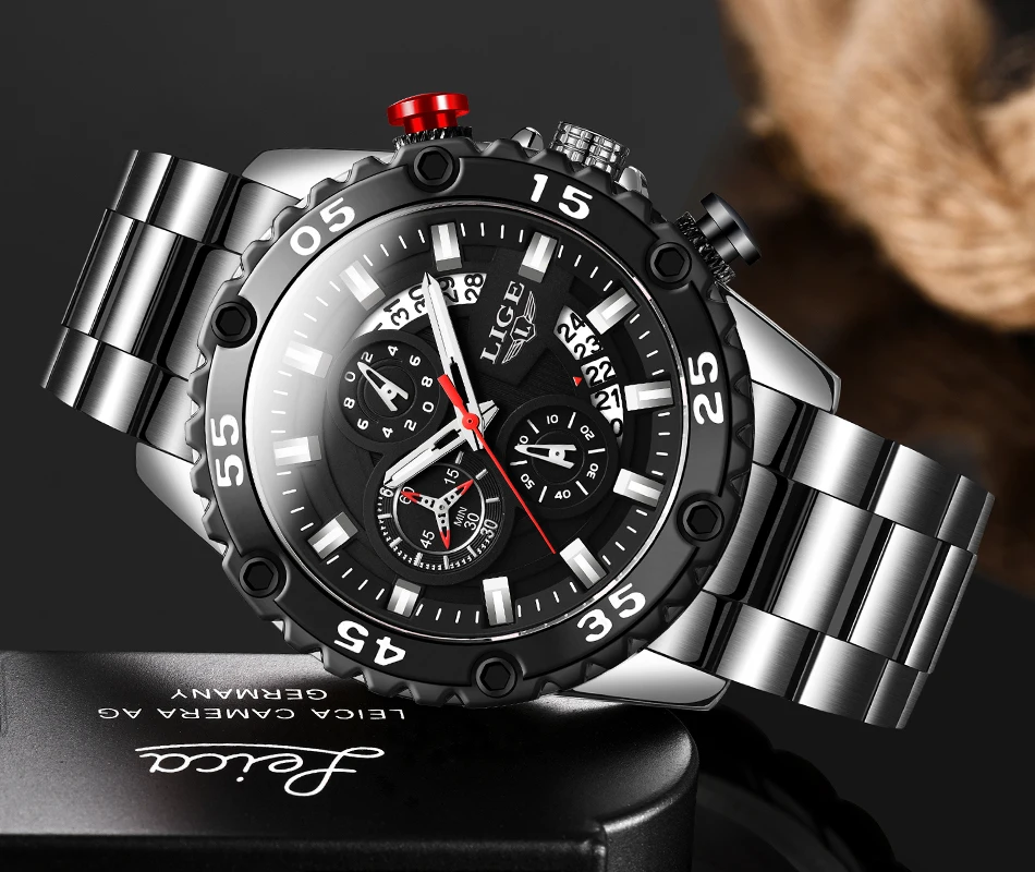Универсальный: маленький циферблат в порядке, три многофункциональных циферблата поддерживают Секундомер и календарь даты, фазу Луны; Японский кварцевый механизм и аккумулятор обеспечивают точное время удержания