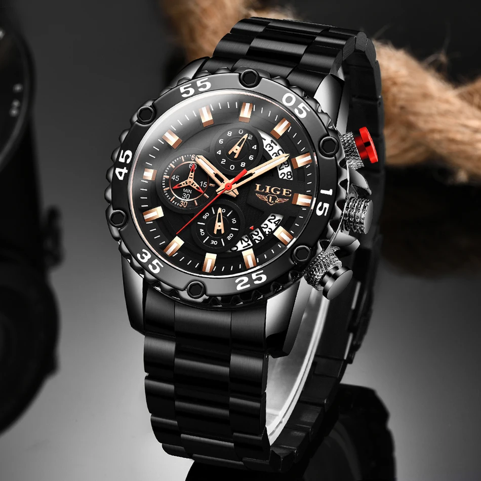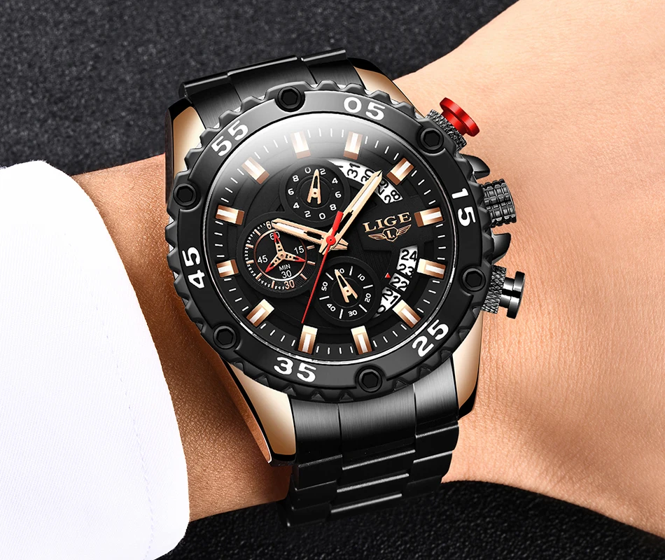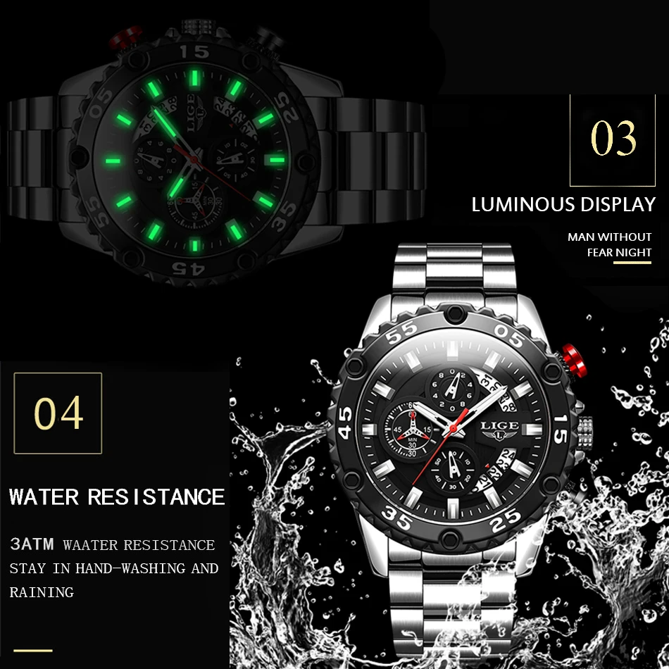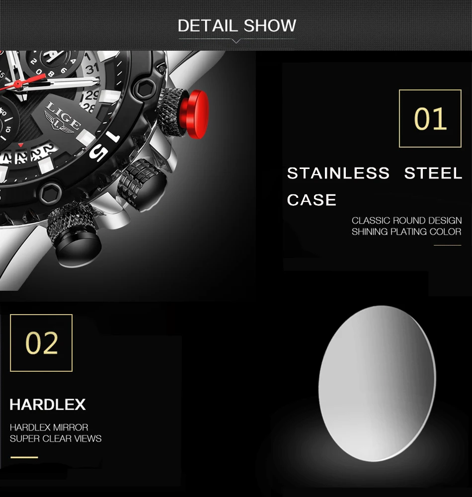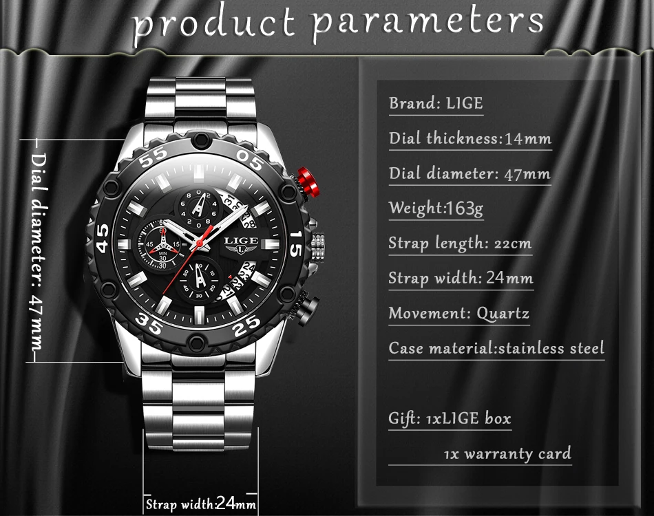 Высококачественное на 100% абсолютно новый высокотвердое минеральное стекло (устойчивое к царапинам), неразрушаемое, износостойкое, с IP покрытием ремешок из нержавеющей стали, никогда не выцветает, супер прочный (инструмент для регулировки звеньев будет отправлен)