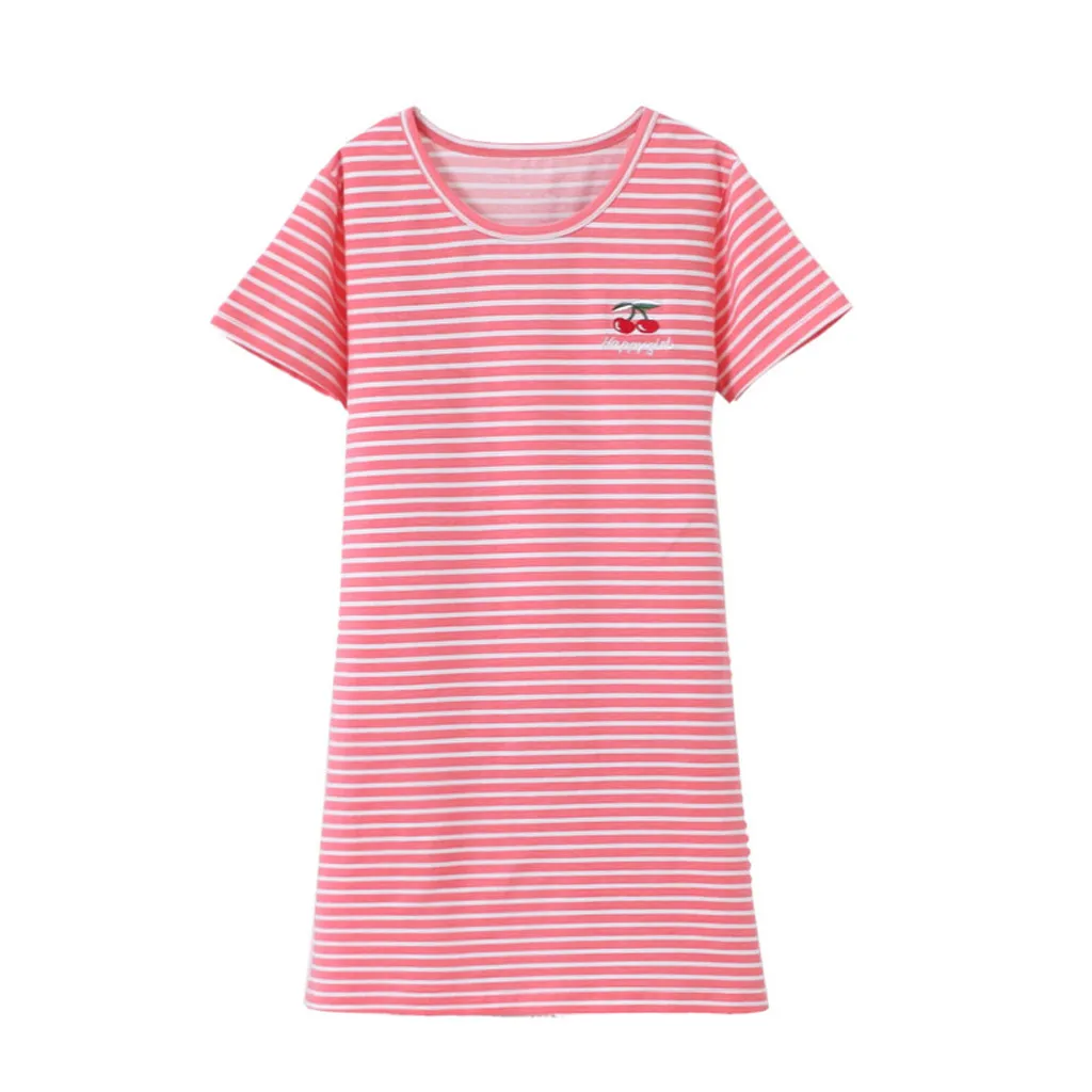 Kids Baby Girl Short Sleeve Stripe Cherry Print Pajamas Sleepwear Nightdress