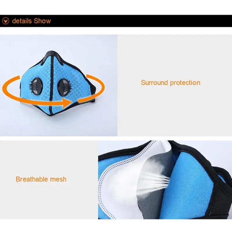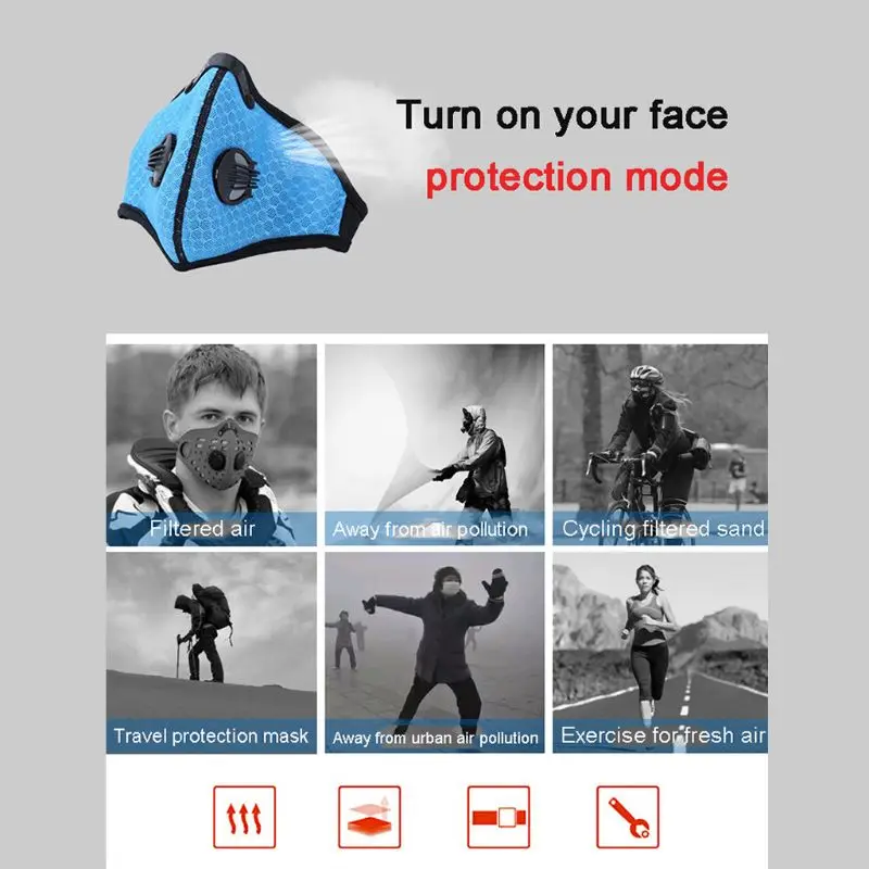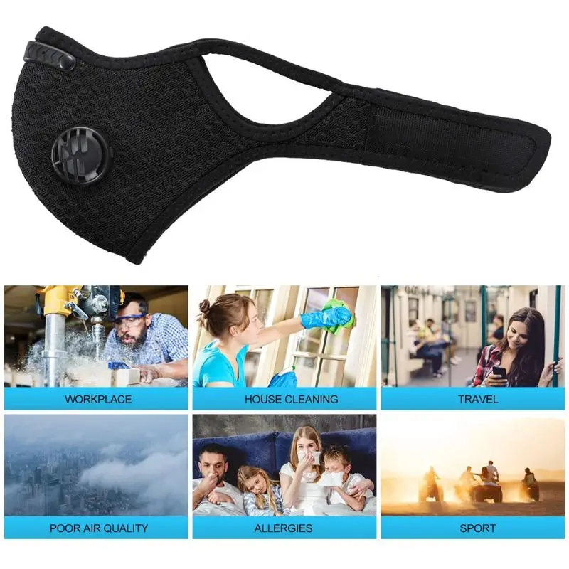 Характеристики: 1. Спортивное защитное оборудование, широко используемое, для защиты вашего спорта и для удовлетворения потребностей здоровья большего количества спортсменов. Подходит для бадминтона, баскетбола, бега, катания на лыжах, альпинизма, велоспорта и т. д. 2. Защита окружающей среды, дышащий и Удобный спортивный текстиль, пыленепроницаемый и влагозащищенный, дышащий, здоровый и комфортный воздух. 3. Дышащий сетчатый материал, редкий эффект камня, уменьшает нагрев от положения спортивной упаковки, материал хорошо адаптируется к коже. 4. Здоровое дыхание: с фильтром с активированным углем, Наша маска против аллергии отделяет 98% пыли, химических веществ, частиц, газов, пыльцы, дыма и дыма. Пылезащитные маски используется для защиты от пыли, выхлопных газов транспортного средства, аллергии, anti-PM2.5 и защиты от смога. Подходит для езды на велосипеде, бега, велоспорта, пеших прогулок, катания на лыжах, столярных работ и других видов активного отдыха. 5. Сетка маски от пыли изготовлена из высококачественного нейлона и обладает отличной воздухопроницаемостью. Мягкие, быстросохнущие, дышащие и удобные в носке. Более толстый и Толстый фильтр из углеродного волокна делает фильтрующий слой более чистым и подходящим для вашей жизни.