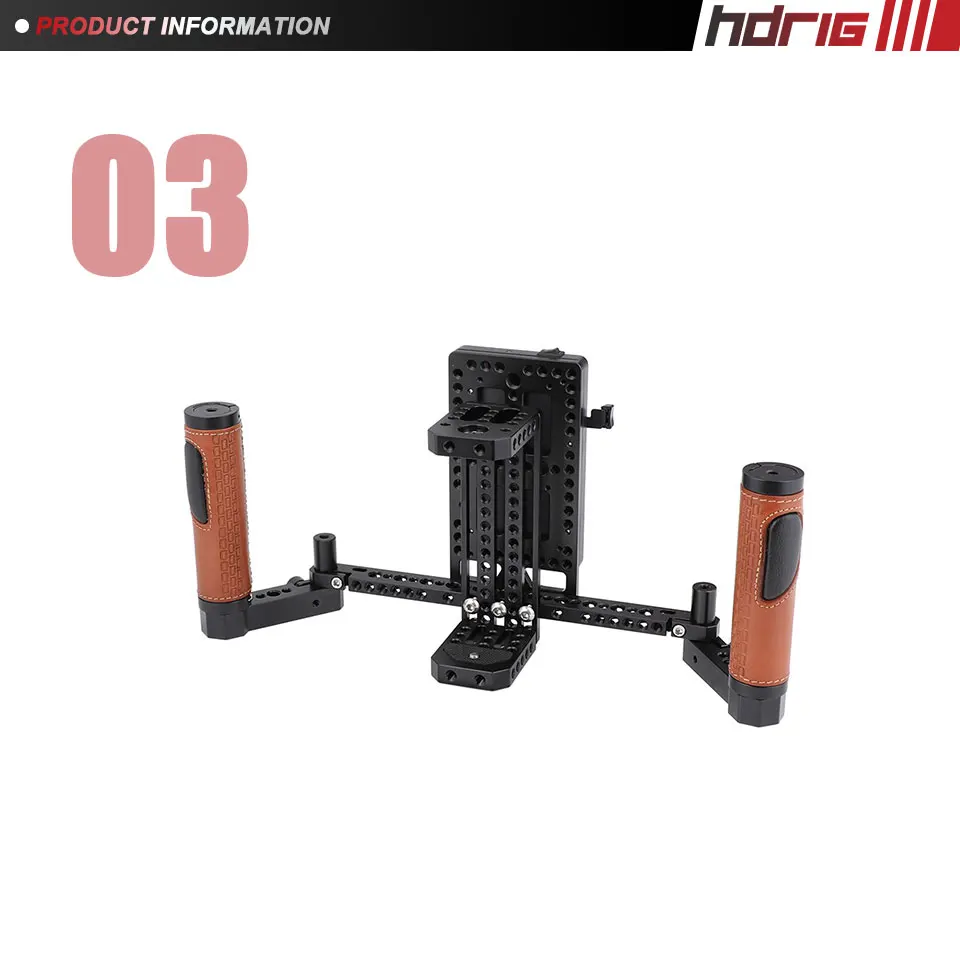 • На основе универсальной пластинчатой системы, которая монтирует монитор с помощью винтов 1/4 "-20 сверху и снизу. Для удобства клетка оснащена сплиттером питания V-lock для батареи, между тем она также оставляет множество монтажных точек для дополнительного крепления, включая оборудование беспроводной передачи и так далее.