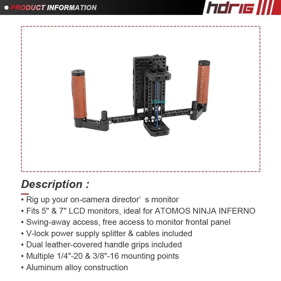 • Эта установка для камеры HDRIG Director's Monitor Cage обычно подходит для любого ЖК-монитора на камере размером 5 "и 7" (идеально подходит для ATOMOS NINJA INFERNO), позволяет надежно держать и переносить во время съемки.