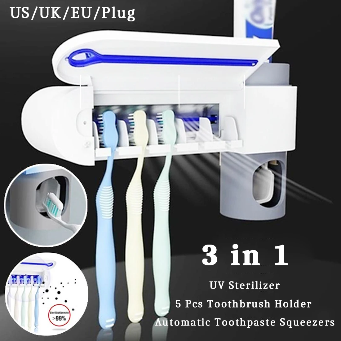 1*Toothbrush UV Sterilizer + Toothpaste Squeezers