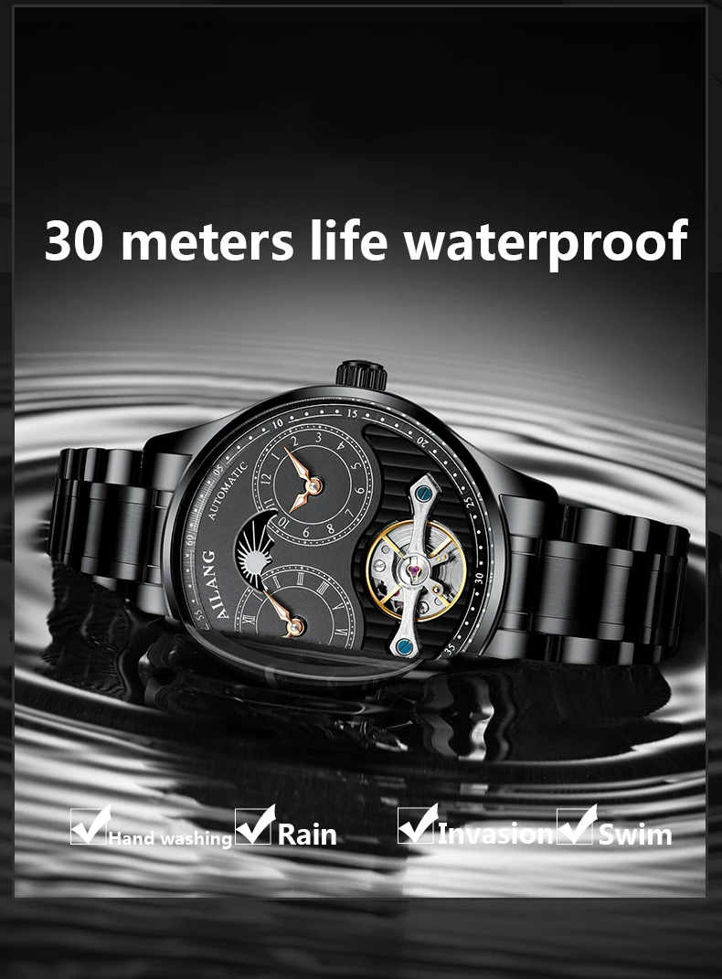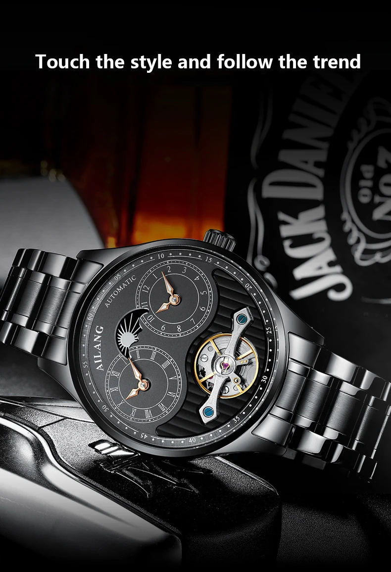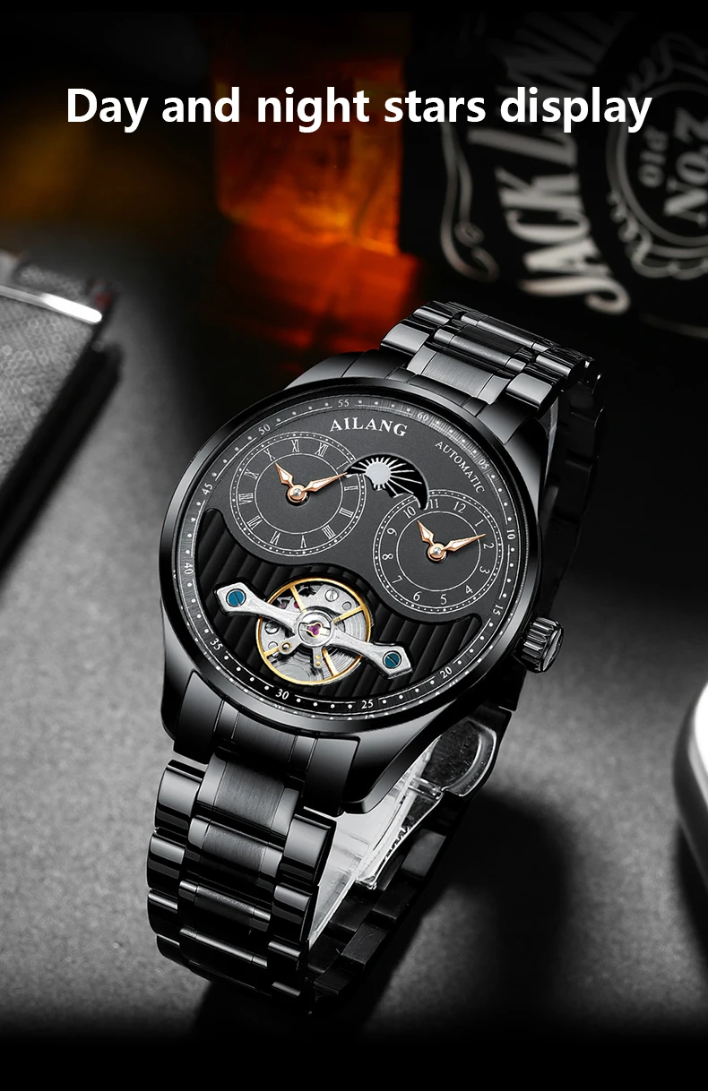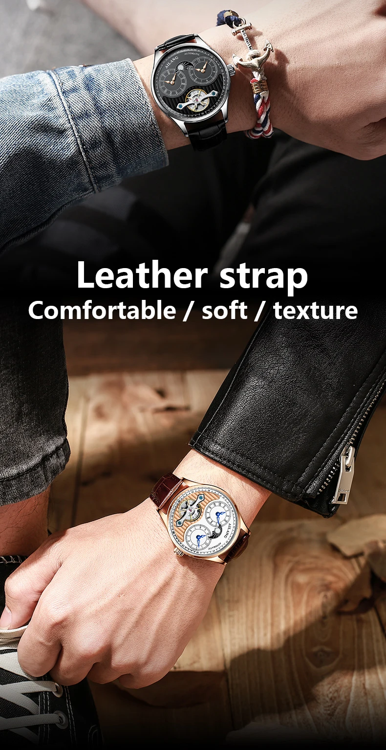 Двухсторонние полые многофункциональные механические часы Вы можете настроить два вида времени, когда день и ночь GMT в двух местах. Полое движение непосредственно проецируется на дно, с сильной светящейся функцией. Атмосферная поверхность, тщательная работа.