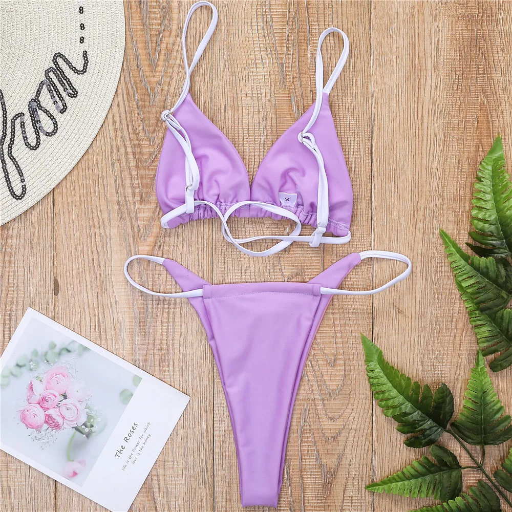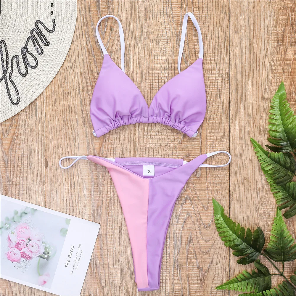 Сексуальный фиолетовый розовый лоскутный треугольный микро-стринги Бразильский бикини 2021 купальник женский купальник пляжная одежда купальный костюм