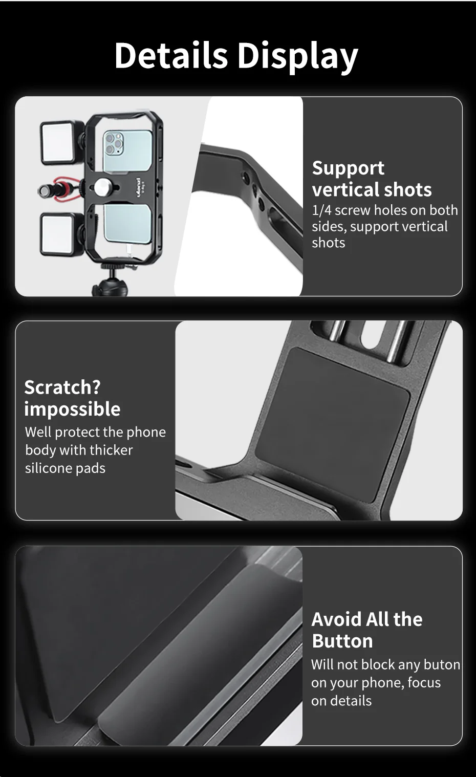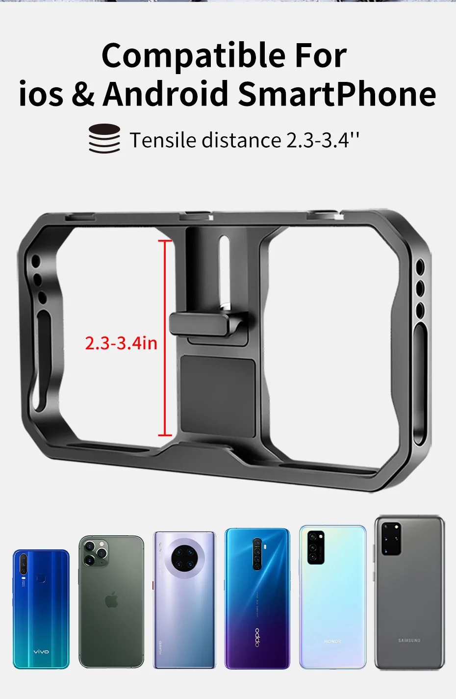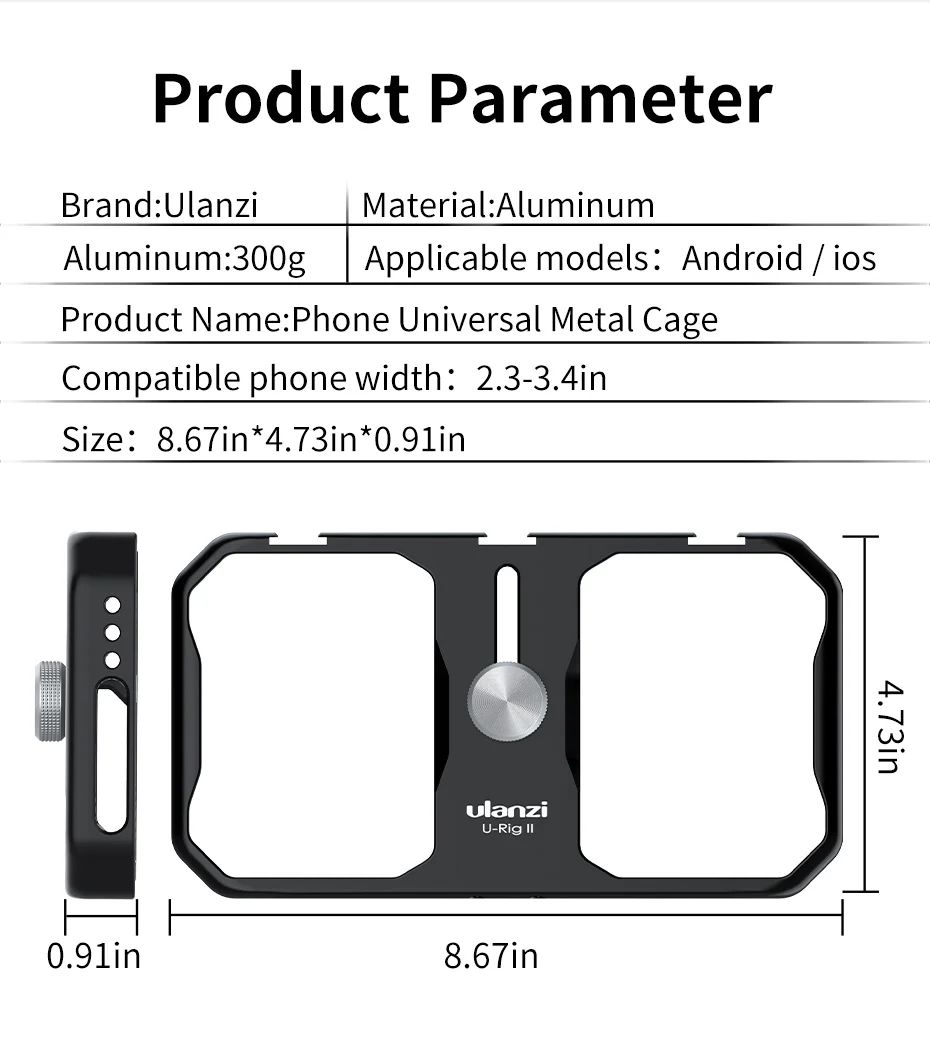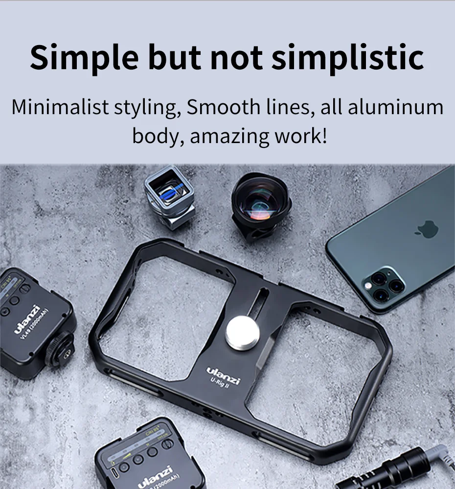 U-Rig ll 금속 케이지 영화 제작 전문화 가장 안전한 클램프 설계 봄과 손잡이 잠금 모드, 전화가 떨어지는 것을 방지하기 위해 이중 잠금 단순하지만 단순하지 않은 미니멀리스트 스타일링 부드러운 라인으로 모든 알루미늄 보디 아마 이징 작업 iOS 및 Android 스마트 폰 호환