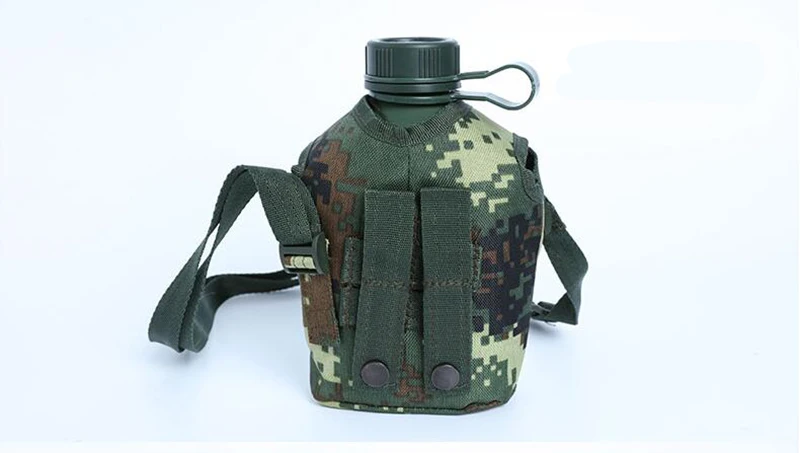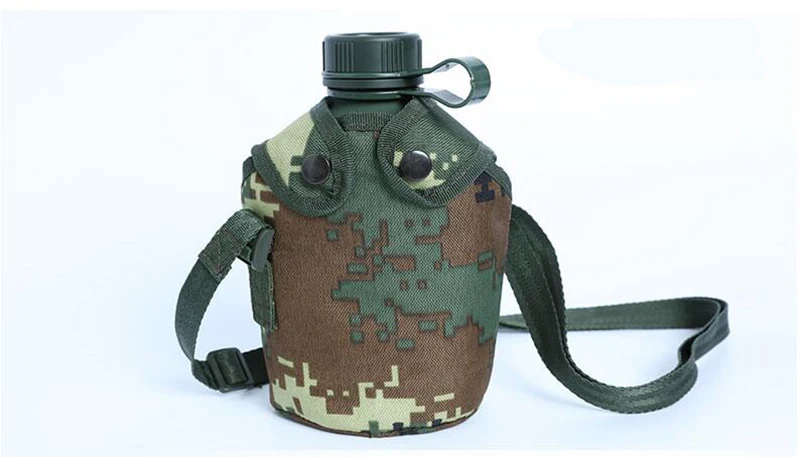 Материал: Алюминий из алюминиевого сплава Внутренний алюминиевый сплав, прочный. Внешняя цифровая камуфляжная крышка горшка woodland имеет мягкий слой ремня для защиты окружающей среды, который удобнее держать в руке. Холщовая Сумка с ремнями, Талия висит на спине, двойного использования. Носик изготовлен из нержавеющей стали. Вес: 360 г