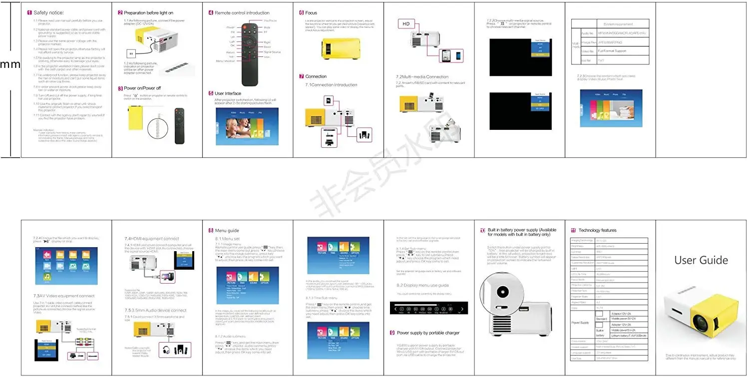 3. В мини-проекторе нет встроенной батареи.