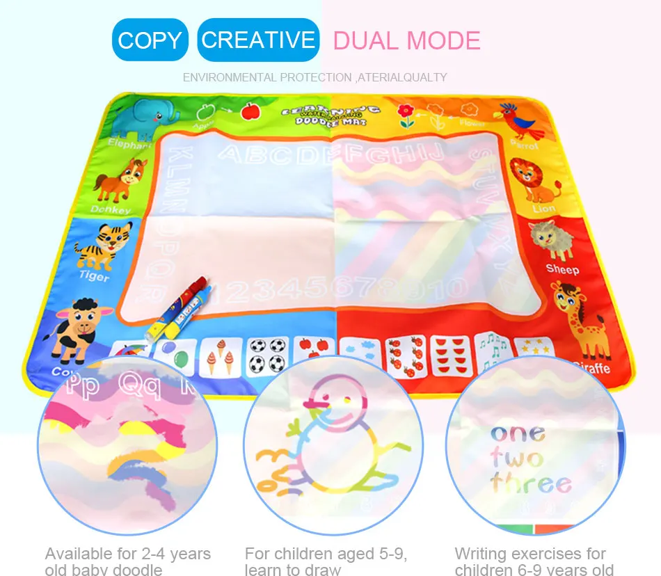 This mat will create fabulous doodles and images to the amazement of your children. You don't need any ink, just using the magic pen filled with water and create on the magic mat. Kids will be fascinated as the colorful images spring up, and slowly fade away so that kids can use the mat again and again. A perfect toy for your little kids!