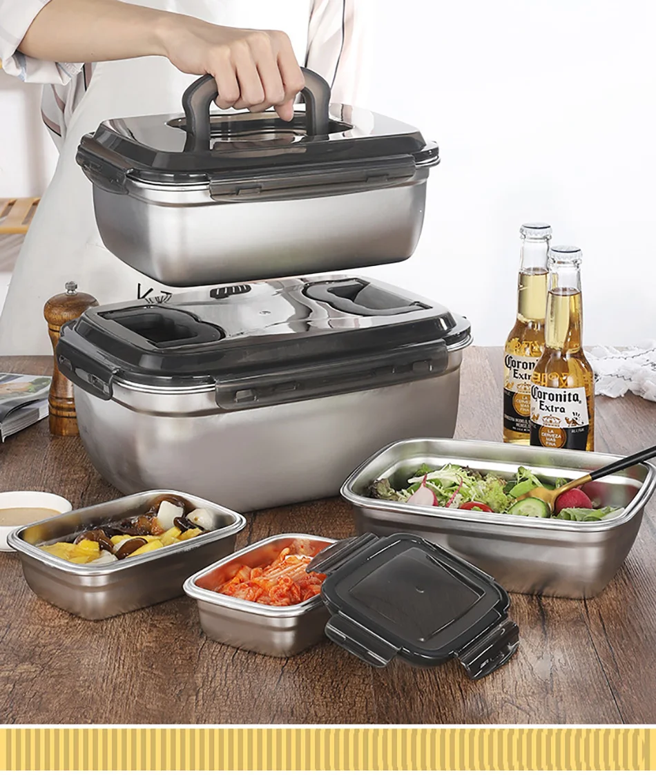 Новый корейский стиль Ланч-бокс индукционная плита нагревательный пищевой контейнер 304 Нержавеющая Сталь Bento коробка кухонные аксессуары