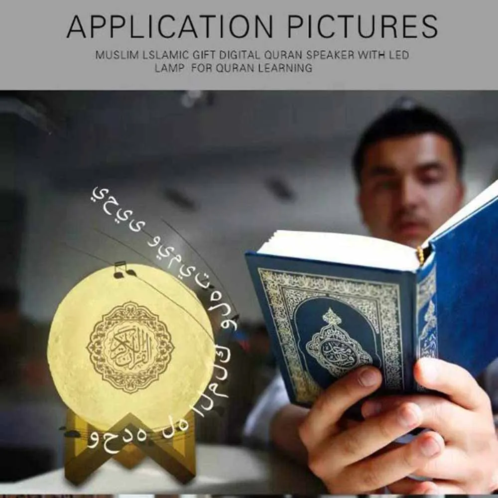 Qurquran ночной Светильник bluetooth-динамик 】HD качество Full Quran лунный светильник динамик с 8 Гб памяти, 28 студентов чтения, 40 языков перевода .. Коран Aya по Ayah переводу, слова по слову, полный Tafseer аудио. Лучший выбор для вас, Наслаждайтесь жизнью
