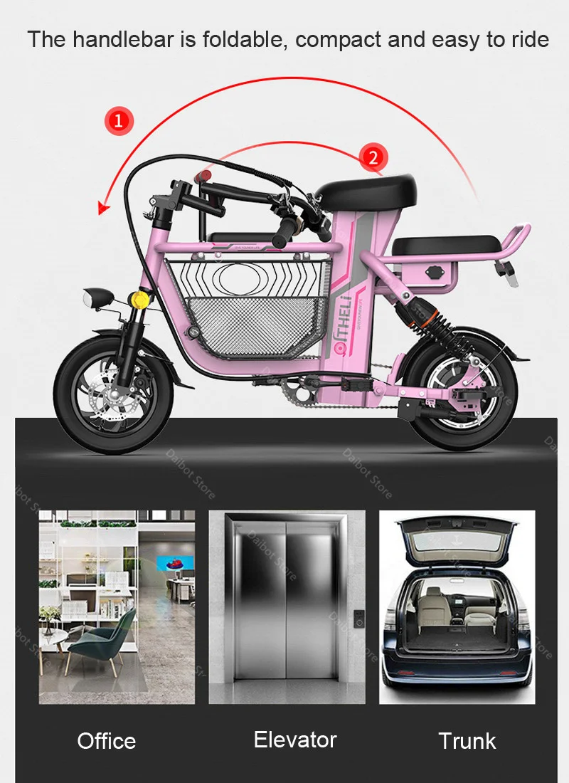 Daibot электрический скутер с сидением 12 дюймов 48 В 350 Вт два колеса электрические велосипеды съемный аккумулятор портативный Электрический велосипед