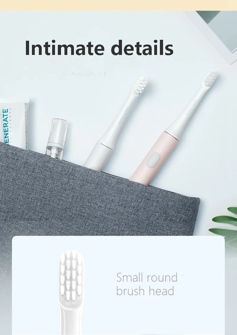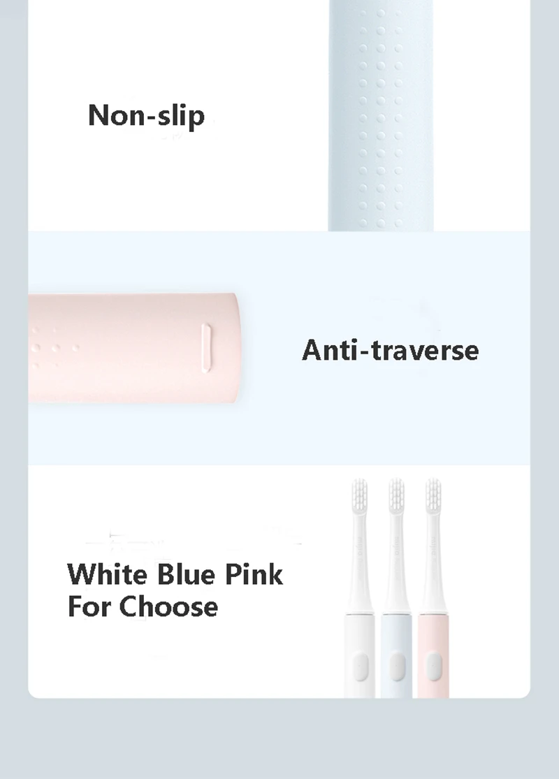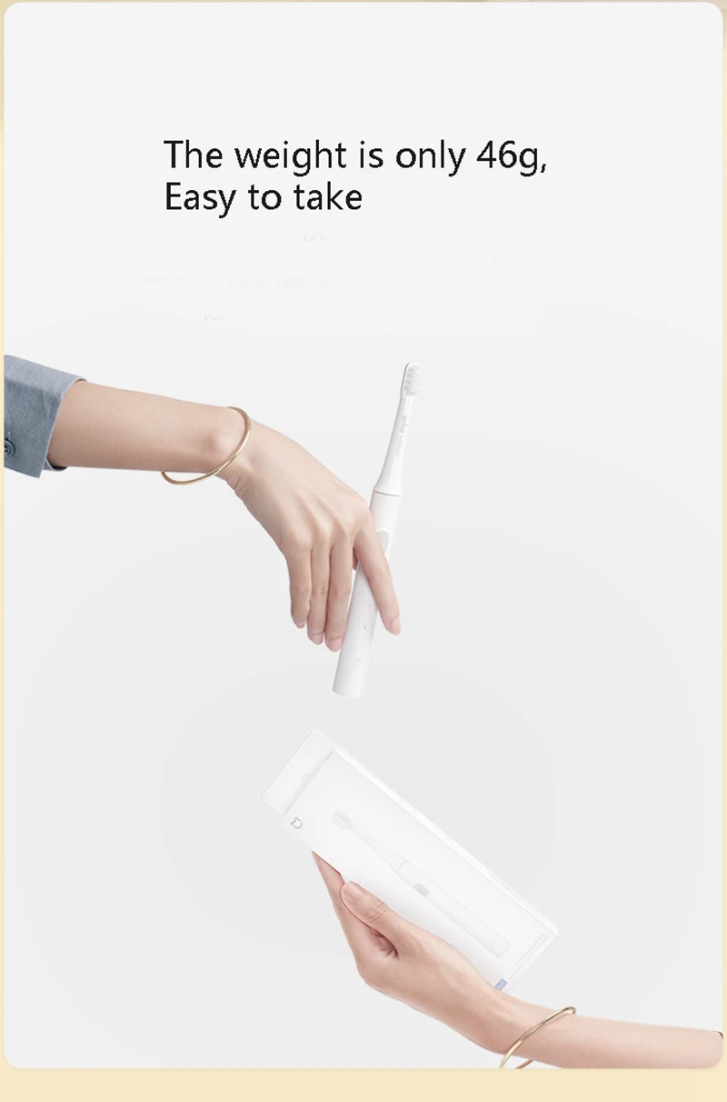 Детали зубная щетка для взрослых Xiaomi Sonic Electrich Бренд Xiaomi Mijia Модель T100 Источник питания USB Rechager Материал Eco ABS Возрастная группа взрослых Защита от помех IPX 7 С посылка 80g Частота вибрации 16500 об/мин Тип Sonic Посылка включает в себя 1 * зубную щетку 1 * головка зубной щетки 1 * usb кабель 1 * инструкции "Особенности: * 16500 об./мин. высокой частоты вибрации, глубокое очищение полости рта в 360 градусов угол. * Импортные тонкие щетинки хороши для чистки зубов и ухода за зубами. * 2 уровня режимов очистки: стандартный режим очистки + режим мягкой очистки * 2 минуты научной чистки, 30 секунд зоны переключения напоминание * 4 часов подзарядки на расстоянии до 30 дней с сенсорной панелью * IPX7 Водонепроницаемость всего тела, высокая безопасность использования * Ручная зубная щетка 46 г, портативный светильник, электрическая зубная щетка с ручкой диаметром 19 мм, идеально подходит для путешествий. * Маленькая круглая головка кисти, грубая противоскользящая ручка, эргономичный дизайн для размещения" PS: водонепроницаемый IPX 7 означает, что устройство погружено в воду в течение 1 минуты в течение 30 минут, и устройство не будет повреждено погружением в воду. Так как большое количество пара генерируется в ванне, он может войти в основной корпус зубной щетки. Не используйте его во время купания.