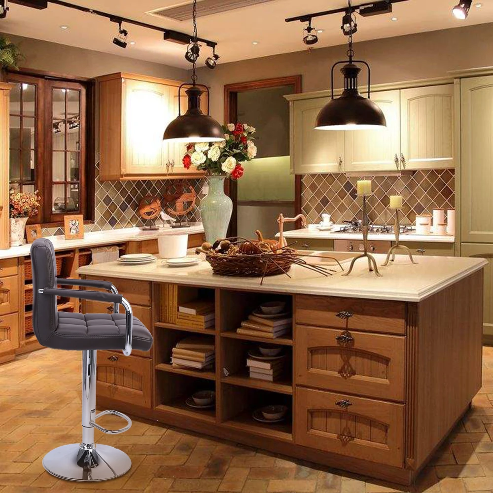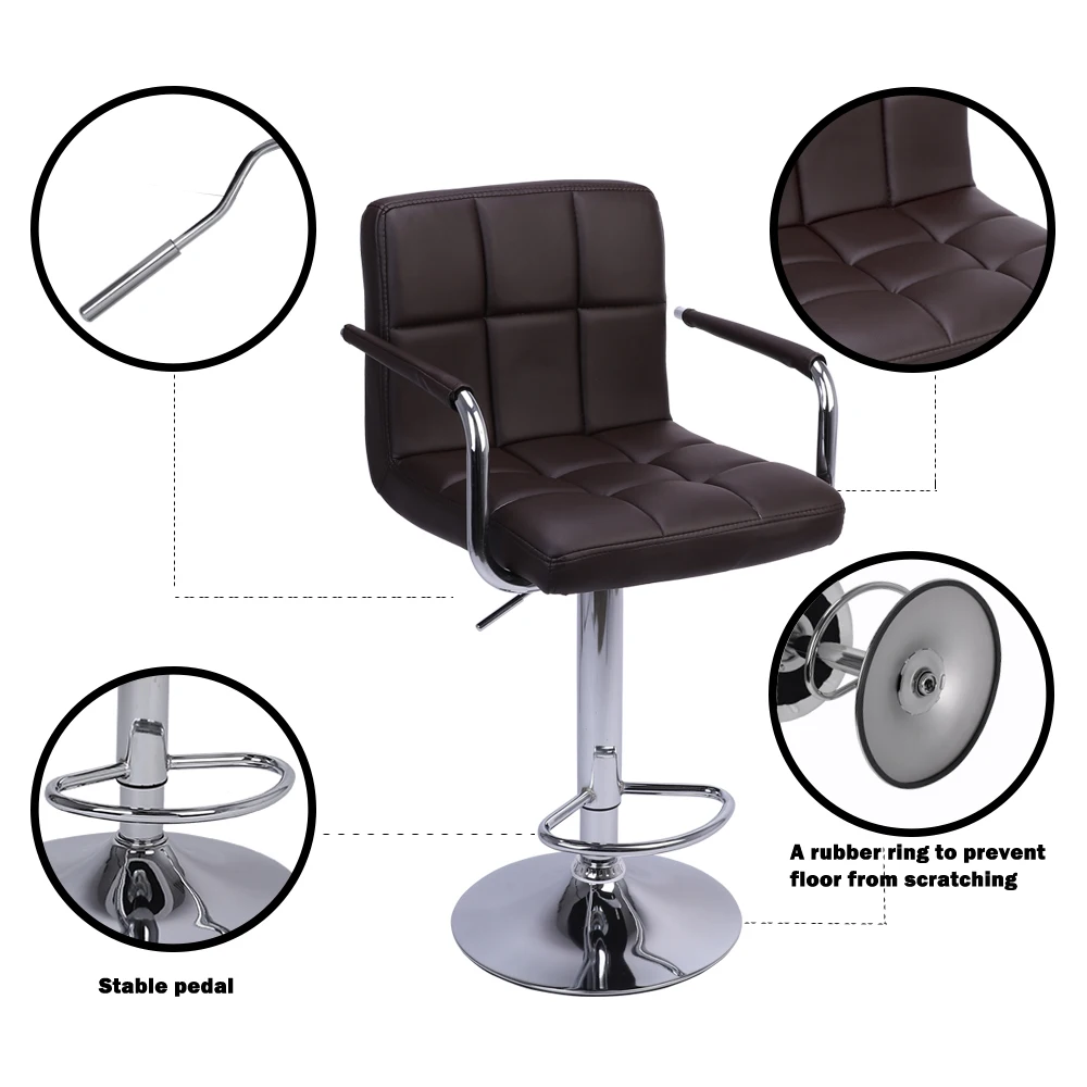Введение: Современные барные стулья подходят для ресторанов, кухонь, гостиных, развлекательных комнат, офисов, кафе и так далее. Стеганый дизайн обеспечивает современный и стильный дизайн. Подушку сиденья можно поворачивать на 360 градусов, а высоту табуретов можно регулировать ручкой. Ручка под подушкой сиденья также может поворачиваться на 360 градусов, так что вы можете регулировать высоту в разных направлениях. Толстая губчатая подушка высокой плотности обеспечивает вам удобное сиденье. Поверхность подушки изготовлена из искусственной кожи для легкой очистки. Конструкция подставки для ног позволяет легко расположить ноги, вы можете сидеть и расслабляться и наслаждаться долгими беседами. Основание изготовлено из хромированной стали, что делает табурет долговечным. Дно резинового кольца предотвращает царапины пола. Каждый барный стул является удобным компаньоном на кухонной стойке или барном высоком столе. Особенности: 1. Высокая плотность, наполненная губкой спинка и подушка и гуманный дизайн подлокотника дают вам более комфортные ощущения 2. Поверхность из искусственной кожи, легко чистится 3. Подставка для ног позволяет легко расположить ноги, вы можете сидеть и расслабляться и наслаждаться долгими беседами 4. Основание и ножная пластина используют технологию гальванического покрытия, которая устойчива к коррозии и может эффективно предотвратить ежедневный износ. Мы тщательно разработали резиновое дно, чтобы предотвратить скольжение и соскабливание. Ваш пол будет защищен этим очеловеченным дизайном 5. Высота барного стула может регулироваться воздушной подъемной ручкой для удовлетворения различных потребностей Примечание: 1. При получении товара, пожалуйста, подтвердите продукт в соответствии с перечнем инструкций. Как только вы найдете меньше деталей, пожалуйста, предоставьте соответствующие фотографии, чтобы связаться с нами. Мы решим это в срок. 2. Пожалуйста, установите товар с инструкцией по эксплуатации. 3. Рекомендуется, чтобы установка не была слишком тугой для легкой регулировки. После установки конструкции, закрепите интерфейс для большей стабильности. Технические характеристики: 1. Глубина подушки: 15,75 " / 40 см 2. Ширина подушки: 16,93 " / 43 см 3. Ширина спинки: 16,93 " / 43 см 4. Высота спинки: 12,6 " / 32 см 5. Подушка от наземной высоты: (23,62-31,5) " / (60-80) см (регулируемая высота) 6. Диаметр дна барного стула: 15,16 "/38,5 см 7. Материал наполнителя: губка высокой плотности 8. Материал поверхности: из искусственной кожи 9. Материал шасси: хромированная сталь 10. Пневматический стержень: азотный Гидравлический пневматический стержень 11. Цвет: Кофе 12. С поручнями: Да 13. Вес подшипника: 150 кг/330.69lbs 14. Вес одного барного стула: 8,3 кг/18,3 фунта Посылка включает в себя: 2 x барные стулья 1 x Установка инструменты 1 х Инструкция по сборке Примечания: 1. Пожалуйста, снимите черный винт на верхней части воздушного стержня перед сборкой. 2. Продукт должен быть помещен в жесткий пол для использования. Пожалуйста, не кладите его на мягкий ковер или неровную поверхность, чтобы избежать опрокидывания во время использования. 3. Барный стул для взрослых. Если у вас дома есть дети, пожалуйста, будьте осторожны, чтобы они не залезали в барный стул. Если ребенок залезает вверх, он может упасть. 4. Для поднятия сиденья снимите вес со стула, затем потяните за пневмат