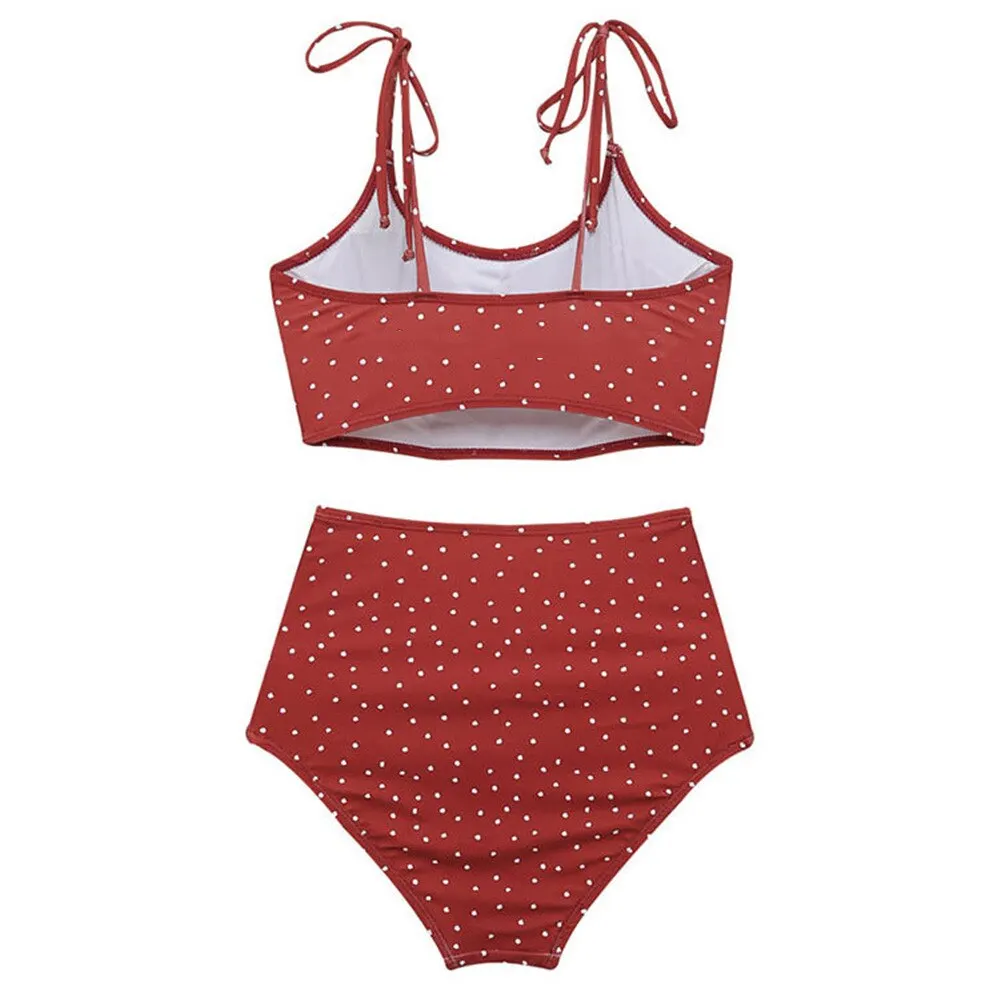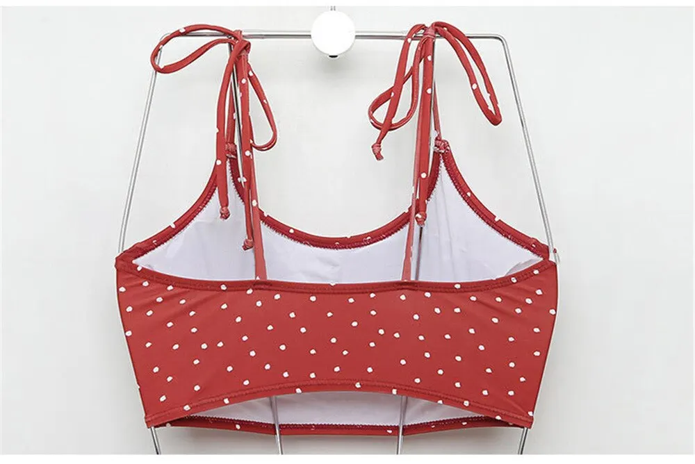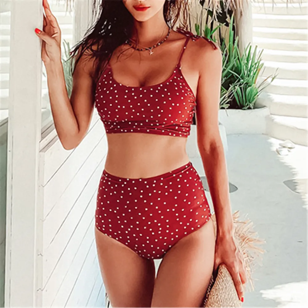 Сексуальный ретро красный белый горошек Высокая талия бикини 2021 Завязывающийся купальник женский купальник пляжная одежда купальный костюм