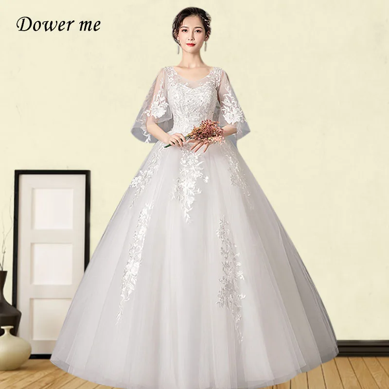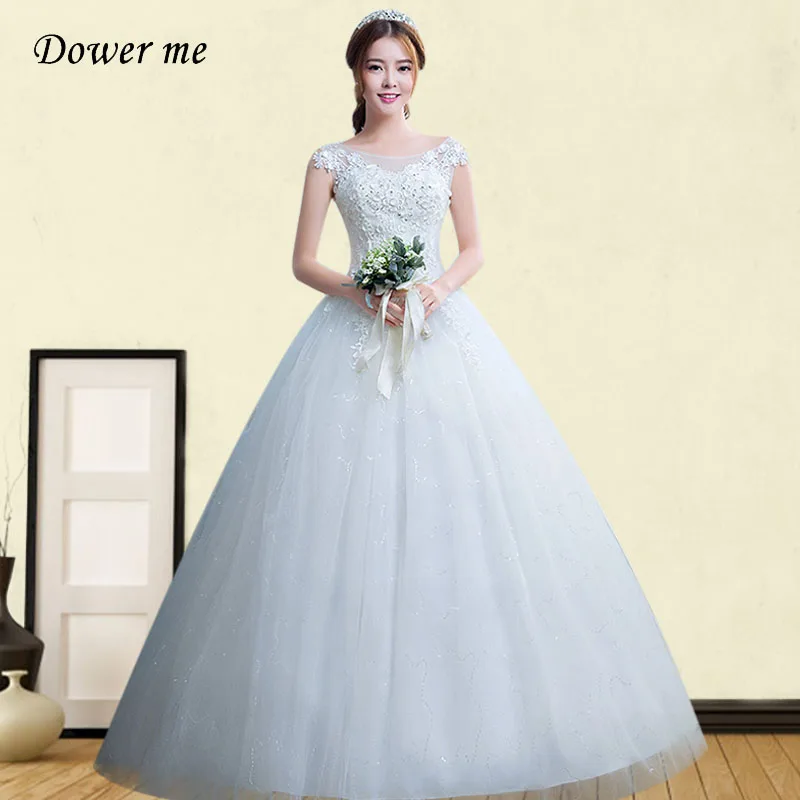 Свадебное платье белого цвета GR667, расшитое блестками кружевное платье размера плюс, свадебные платья с коротким рукавом и вышивкой, Vestido De Noiva, изящные свадебные платьяUS $79,78 /