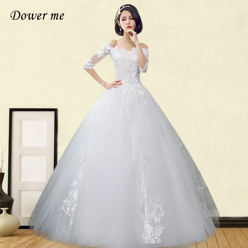 Официальные свадебные платья с аппликацией GR728 свадебное платье с открытыми плечами кружевное платье с вышивкой Vestido De Novia размера плюс свадебное платьеUS $110,04 /