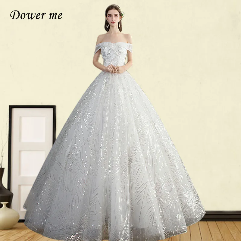 Свадебное платье с открытыми плечами; GR707; Длинные свадебные платья с вышивкой; Блестящие Свадебные платья с блестками; Аппликации; Vestidos De NoviaUS $88,91 /