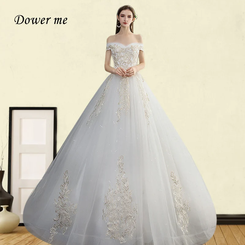 Свадебное платье с открытыми плечами, GR681, с аппликацией, с вышивкой, Vestido De Novia, длина до пола, свадебное платье на шнуровке, es 2020US $63,55 /