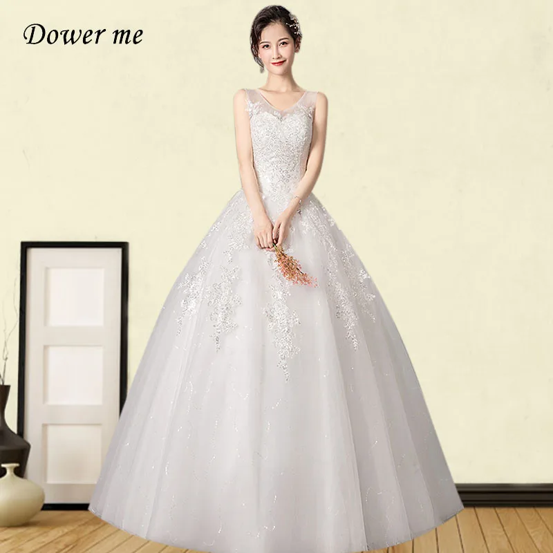 Элегантное свадебное платье GR682 с О-образным вырезом без рукавов в пол Vestido De Novia Аппликации Кружева Свадебные платья 2020 свадебное платье esUS $63,55 /