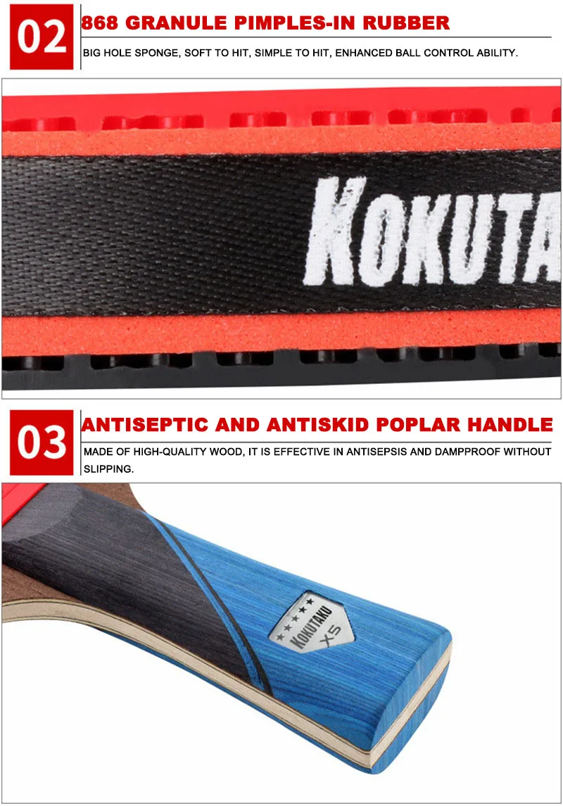 KOKUTAKU 5 звезд профессиональная ITTF ракетка для настольного тенниса летучая мышь углеродная весла для пинг понга ракетка 868 двойное лицо прыщи в резиновой