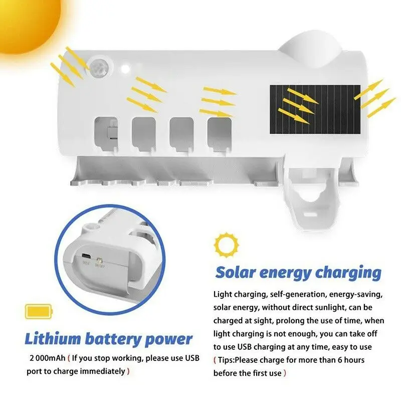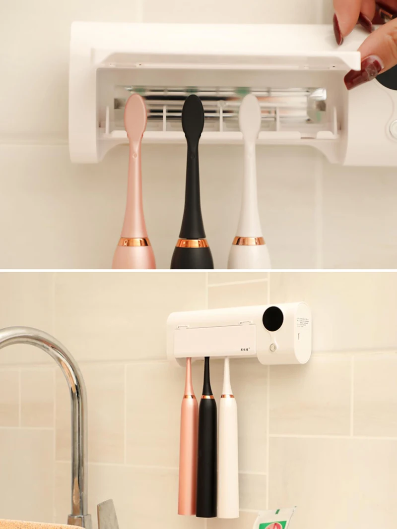 -Настенный держатель для УФ зубной щетки, легко прикрепить его к стене с помощью двусторонней клейкой ленты.