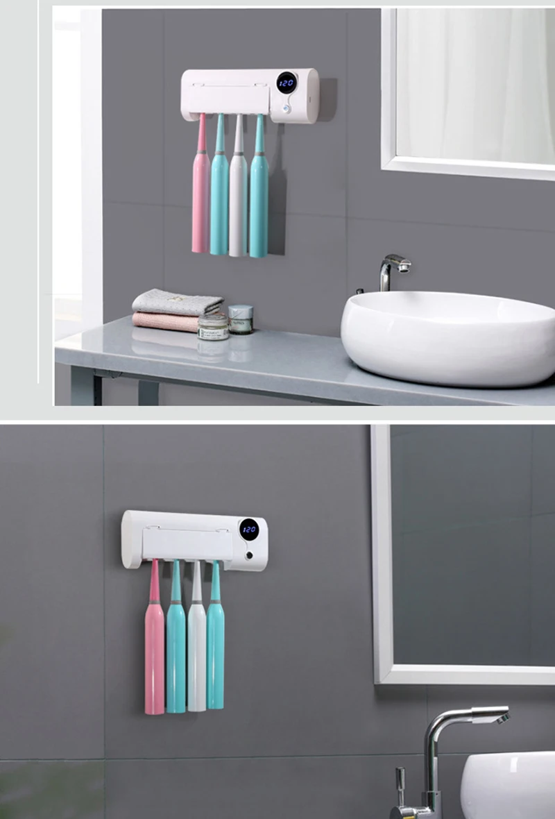 -Настенный УФ стерилизатор зубных щеток, легко прикрепить его к стене с помощью двусторонней клейкой ленты.