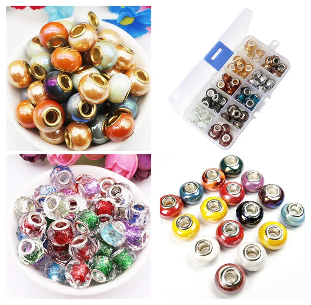 5 мм большая дыра Хрустальные стеклянные бусины Подвески подходят для Pandora браслет цепочка змеи для женщин девушек Сделай Сам Изготовление ювелирных изделий