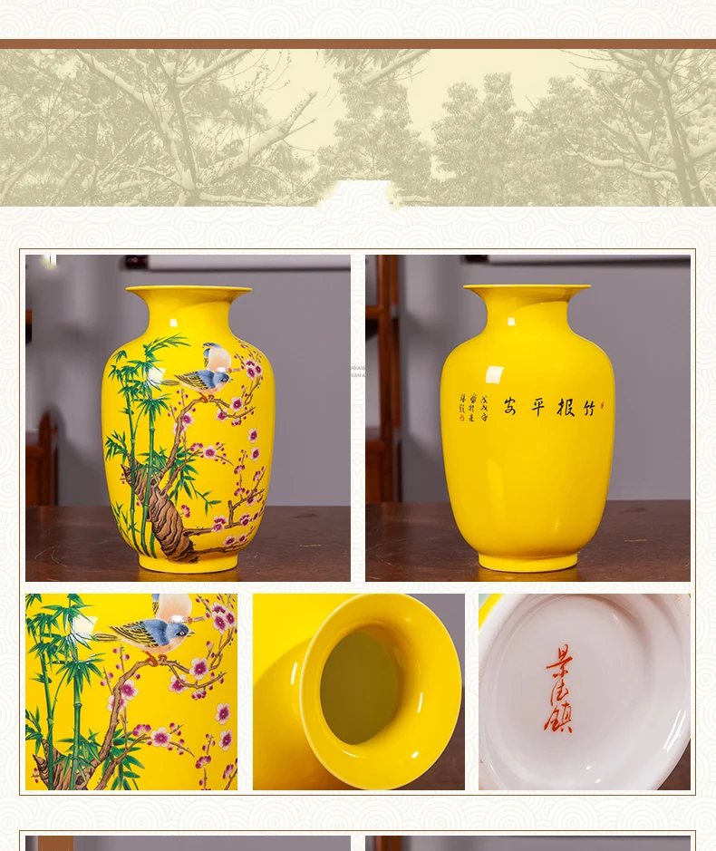 Цзиндэчжэнь Античная Керамика маленькая Желтая Ваза Цзянси цветочное украшение китайская гостиная ТВ шкаф Домашнее украшение ремесла