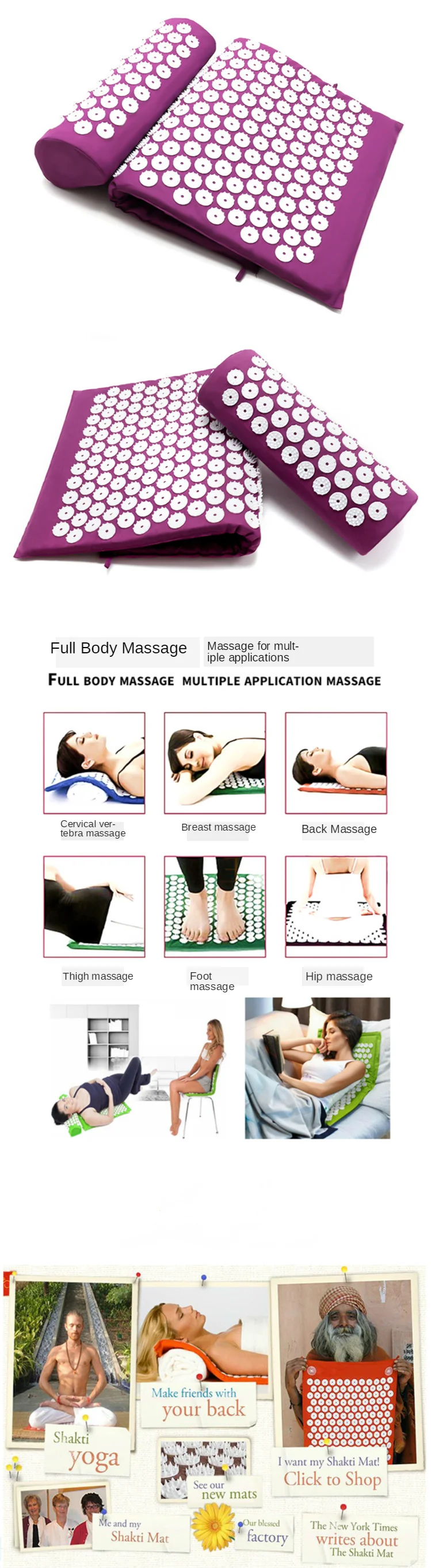 Massager Cushion Relieve Stress Back Body Yoga Mat Acupressure Pain Spike Mat Acupuncture Massage Yoga Mat Massager pad