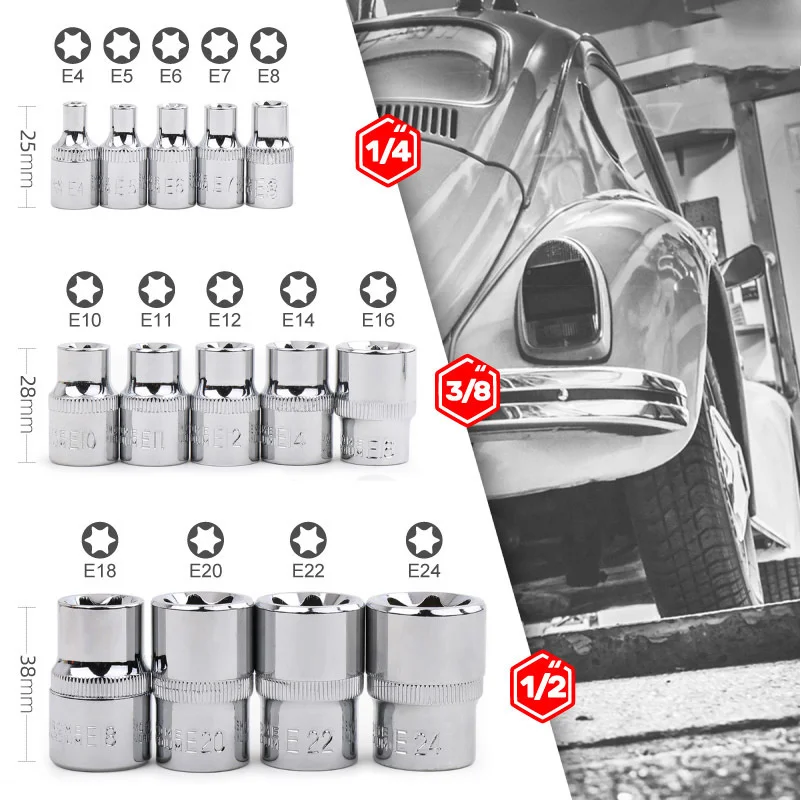 2. 10 шт 1/4 "и 3/8" E розетки: