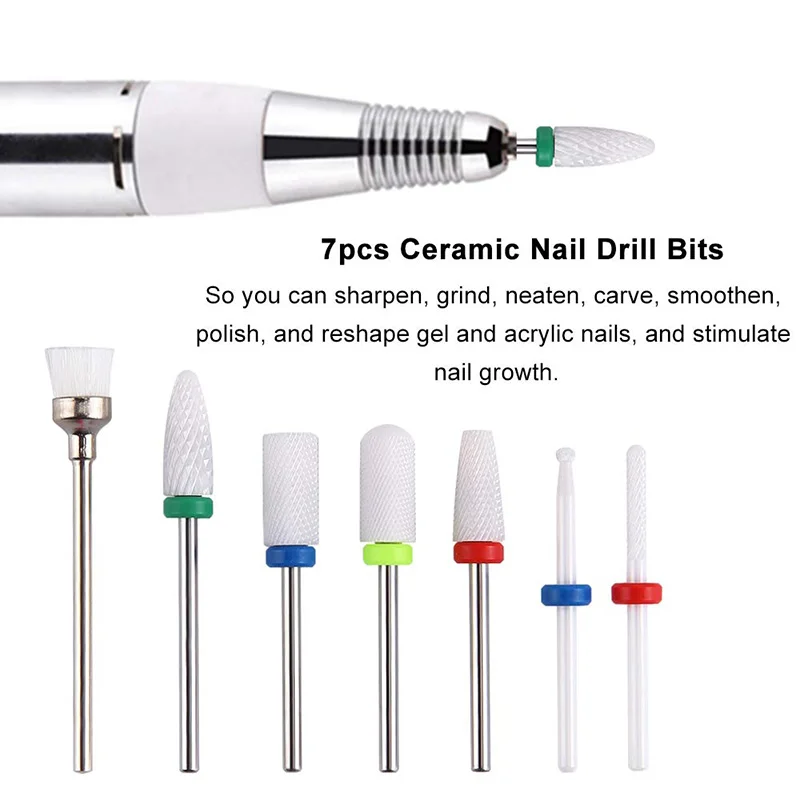 Набор керамических Алмазных фрез для маникюра, 7 шт., фрезы для ногтей, аксессуары для ногтей