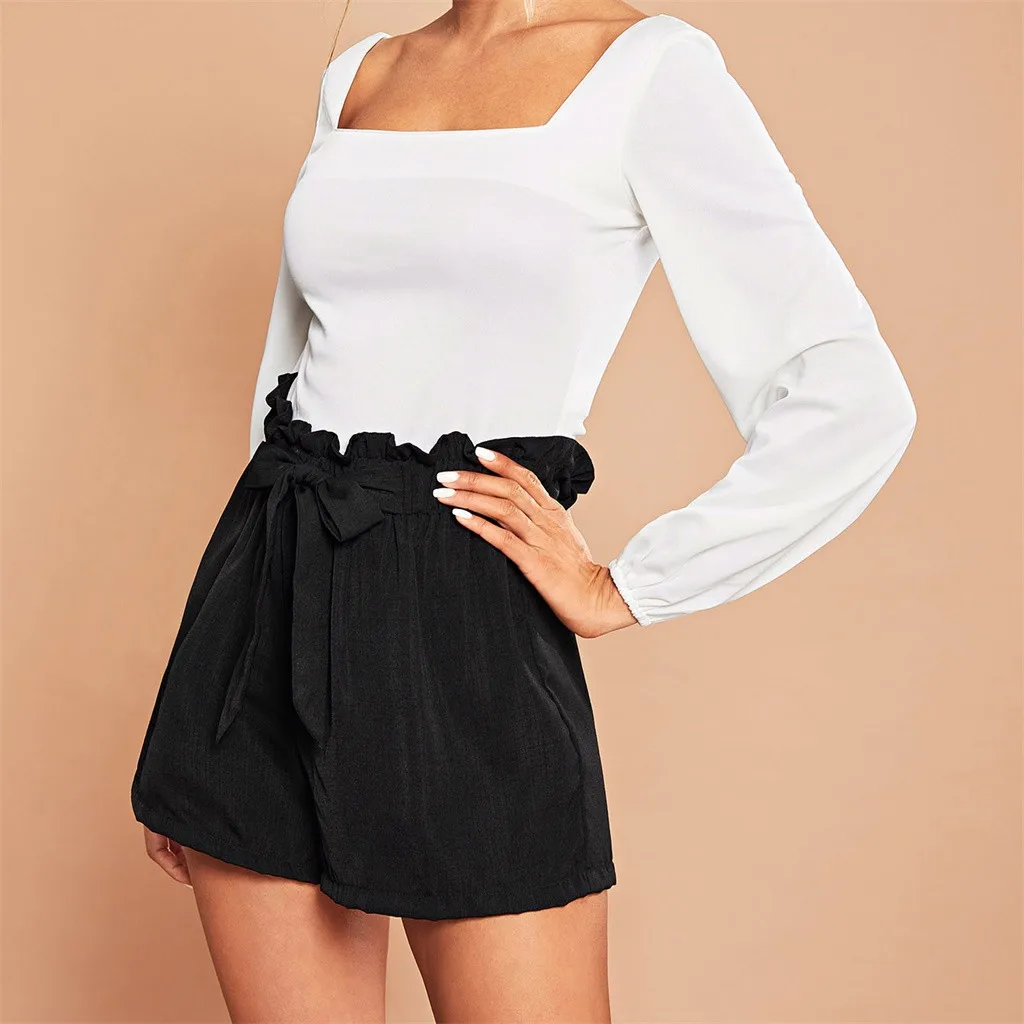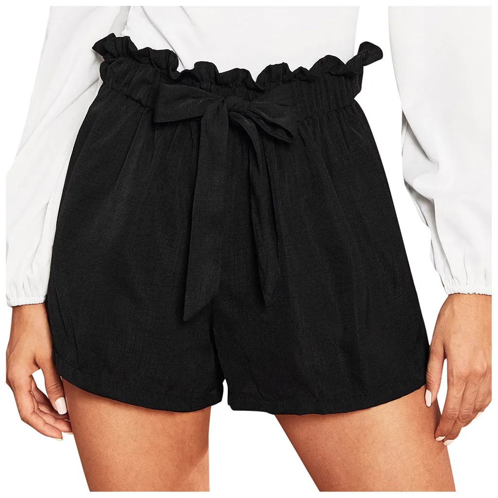 Женские Летние повседневные штаны с завязками спереди и оборками на талии