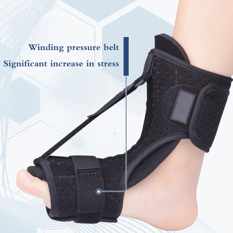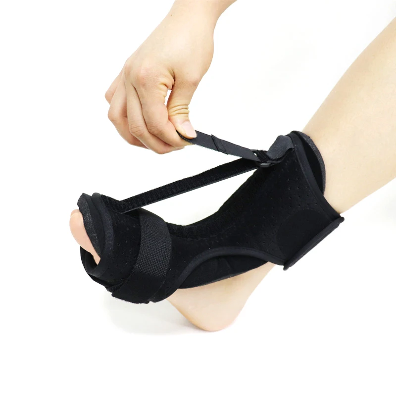 Ночная шина подошвенного фасциита предназначена для поддержания растягивания стопы и обеспечения ортопедической поддержки для падения стопы, чтобы уменьшить воздействие утренней боли в пятке, связанной с подошвенным фасциитом и ахилловым тендонитом.