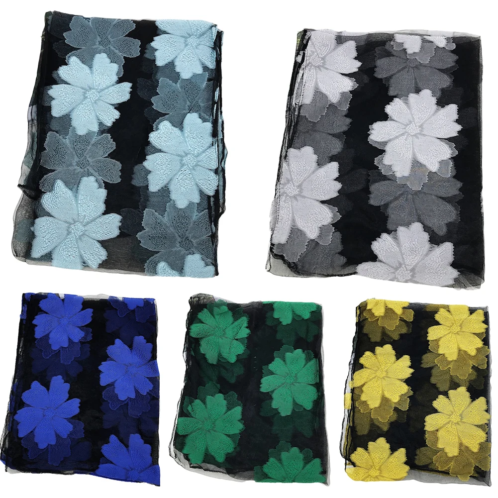 Женская Цветочная вышивка, отвесная, анти-УФ, длинный шейный шарф, головной платок, хиджаб, шаль