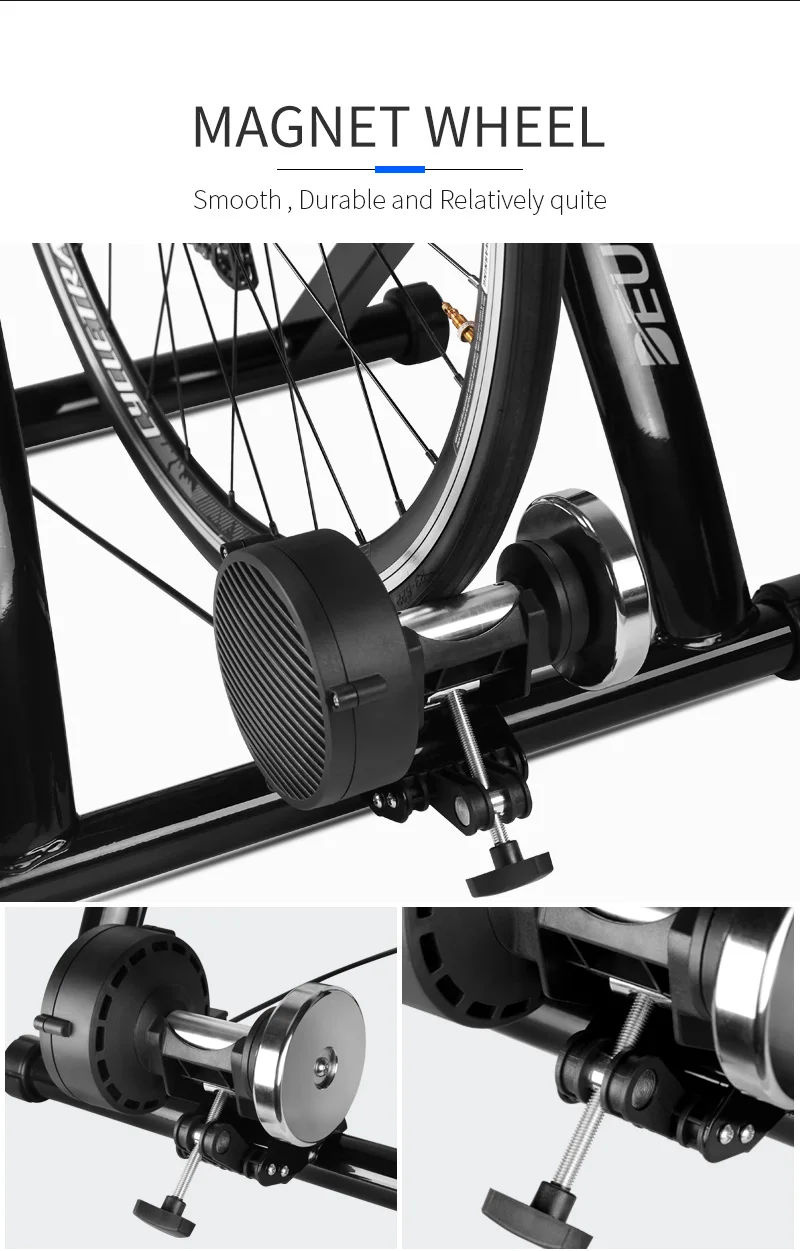 1. С разумной ценой для инструмента, также со всеми необходимыми функциями. 2. Создайте фиксированное сопротивление с магнитным маховиком, сопротивление может быть отрегулировано для имитации простых дорог, холмов или интервалов; 3. Относительно тихий, хороший выбор начального уровня 4. Прочная и стабильная рама, легко хранить. 5. Работает для различных размеров колес и велосипедов, таких как дорога, горный велосипед.