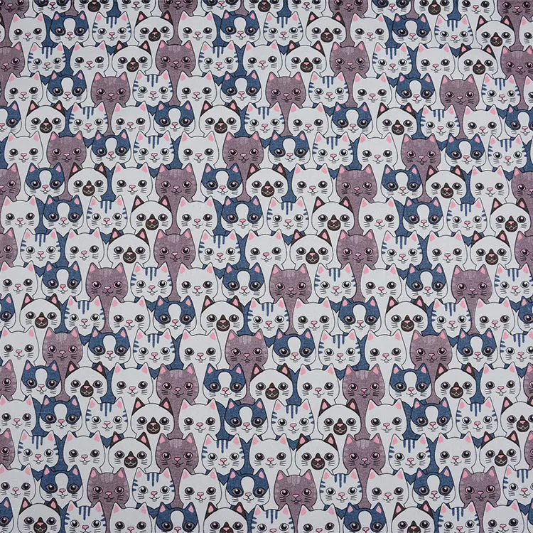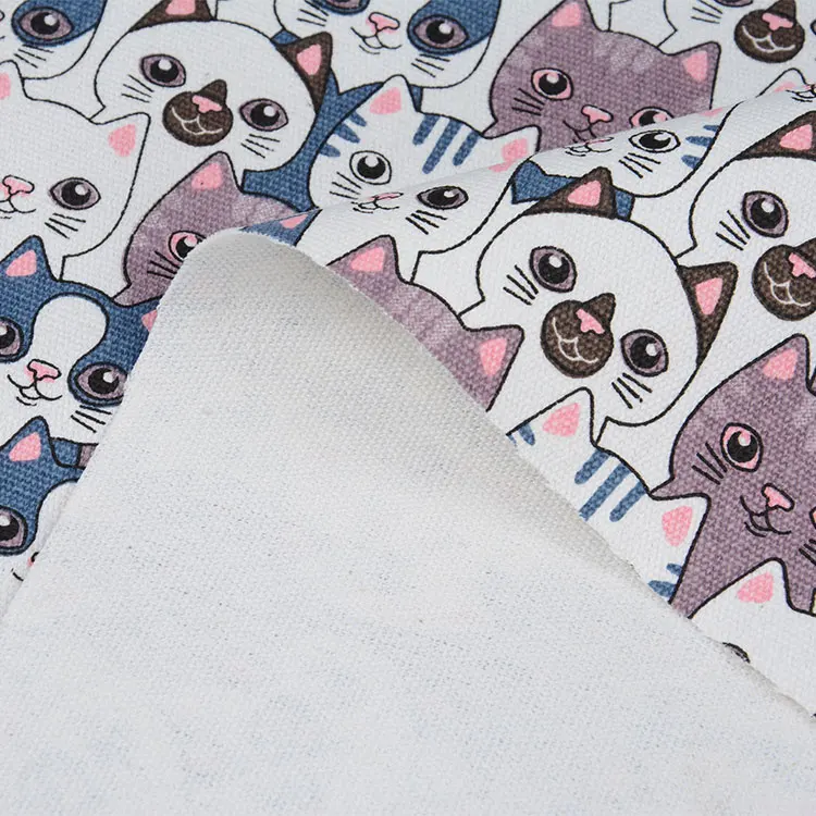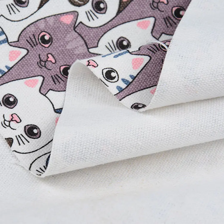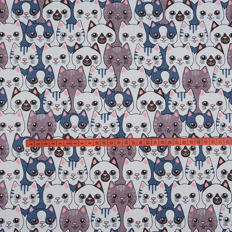 Кота холщовая ткань с принтом