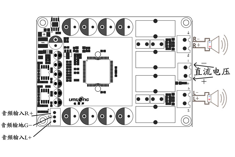 Схема подключения платы усилителя мощности выглядит следующим образом:
