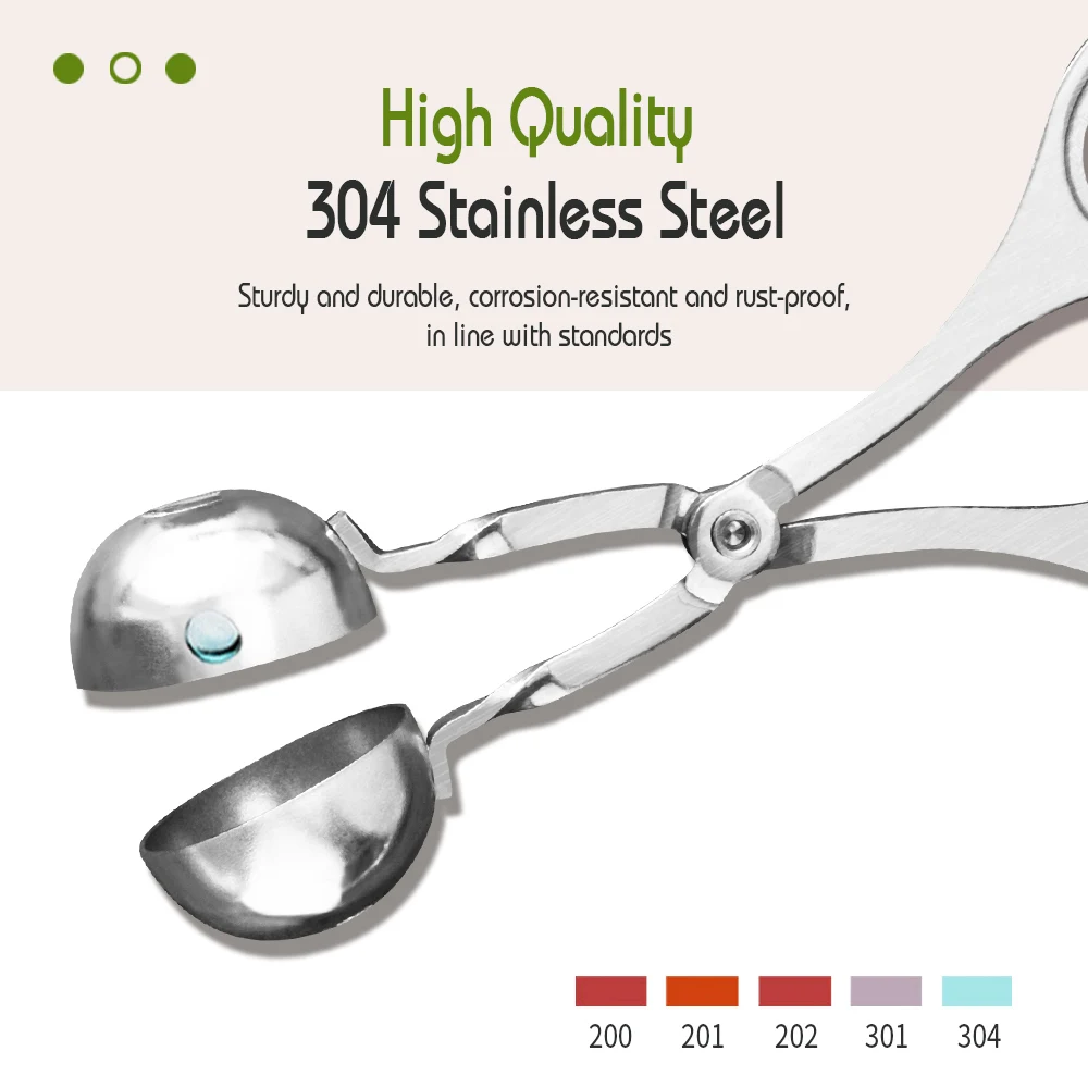 Изготовлен из пищевой нержавеющей стали, безопасен и не тускнеет или окисляется легко. Конструкция зажимного отверстия-оба конца открытого пространства, удаляют лишний материал, удобно образуются мячи. Длинная ручка может уменьшить давление вашей руки, сделать вас чувствовать себя более легко. Мясной Баллер из нержавеющей стали гладкий, что пища не прилипает к нему, что позволяет легко чистить. Специальная форма шарика поможет вам легко сделать мяч. Используется для пирожных, печенья, укусов пирогов, мячей дыни, фрикадельки и многого другого.
