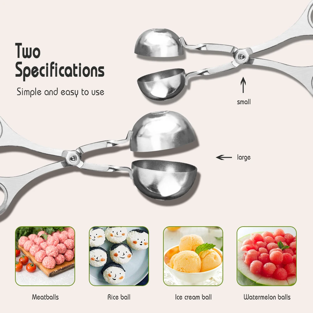 Материал: нержавеющая сталь 304 Цвет: серебристый Размер: большой, маленький Диаметр совка: 4,7 см/3,6 см Вес: 67 г/73 г Посылка включает в себя: 1/2 x устройство для приготовления мясных шариков