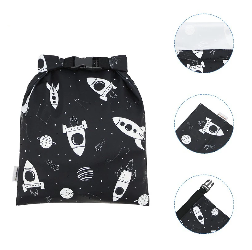Простой в использовании, милый дизайн, водонепроницаемые моющиеся сумки для хранения, пакеты для закусок, большая емкость, тканевая сумка для подгузников 28*40 см с гнездом