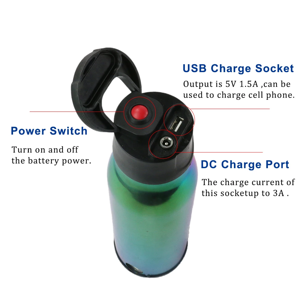 1. ВстроенныйПодлинная Высококачественная 18650 литиевая батарея класса А2. Новый дизайнНебольшой светильник с держателемПодходит для всех электрических велосипедов3. Водонепроницаемый IP65 иТвердый алюминиевый сплав, Сильнее, чем обычный пластиковый чехол🔋【Технические характеристики】